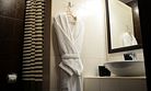 Ванная комната: душ, раковина, туалет, полотенцесушитель, фен, гигиенические средства, халат, тапочки.