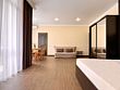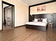 Просторный однокомнатный номер с балконом. Номер оснащен: двуспальная кровать, диван-кровать (140х190), прикроватные тумбочки, шкаф-купе, обеденная группа, ТВ, кондиционер, сейф, мини-холодильник, бутилированная вода, чайная станция.