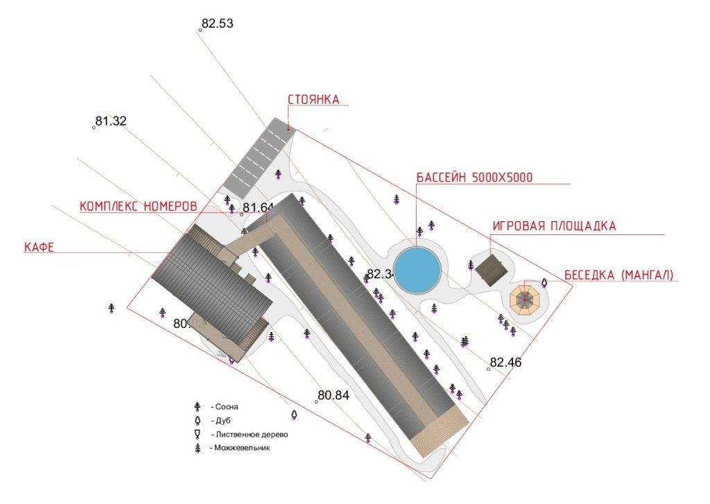 Лодж «Алтай» состоит из двух отдельно стоящих зданий. В первом, двухэтажном, на первом этаже располагается ресепшн, кафе, прачечная, туалет. На втором этаже — спортзал с теннисным столом и аэрохоккеем. Второе, одноэтажное, вытянутое в плане здание и есть сам отель с гостиничными номерами. Главная особенность лоджа в том, что он полностью вписан в природный лесной ландшафт, из каждого номера открывается вид на лес, а на участке в 10 соток стоит более 20 крупных деревьев, таких как пицундская сосна и можжевельник.