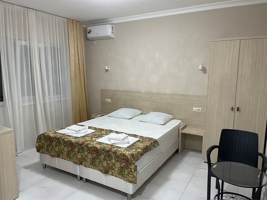 телевизор, Wi-Fi, холодильник, фен, ванная комната, банные полотенца, двуспальная кровать, тумбы, стулья, шкаф для одежды, вешалки, зеркало, сейф, чайник, унитаз, раковина, душ, раздельный санузел, вид во двор, туалетный столик, сплит-система, номер для некурящих, кресло-кровать, частный двор, затемняющая штора, прачечная (за дополнительную плату)В гостиничном номере