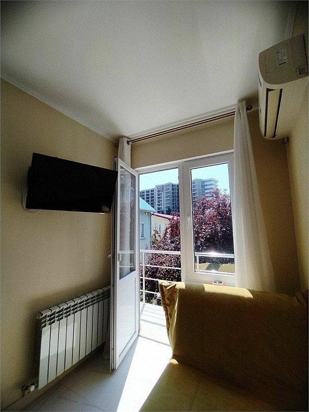 Светлый номер с индивидуальной кухней оснащённый всем необходимым для приготовления пищи ( холодильник, микроволновая печь, электрическая плита, необходимая посуда), кондиционер, TV, балкономУслуги и удобства