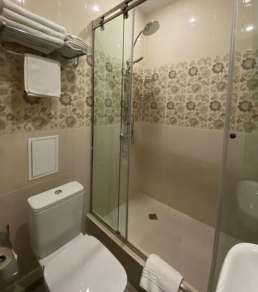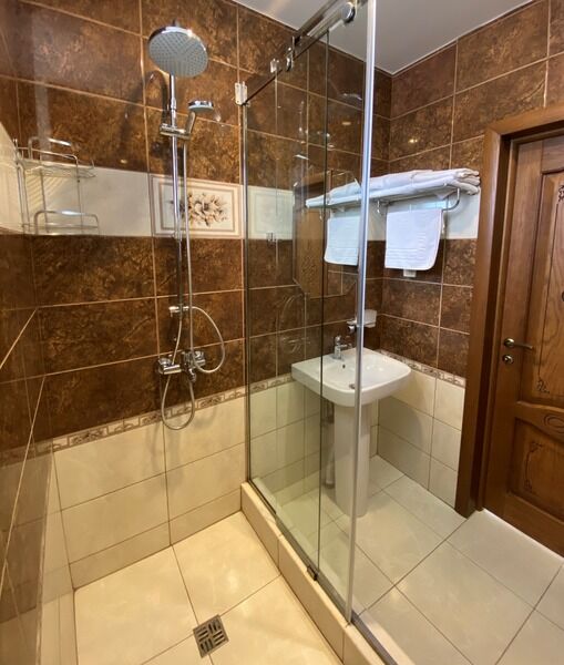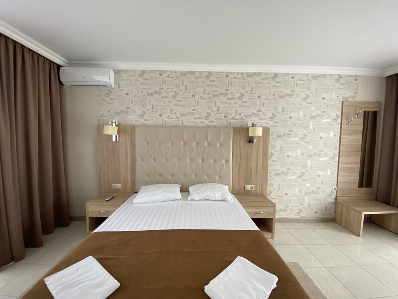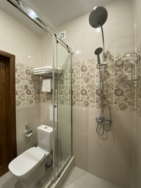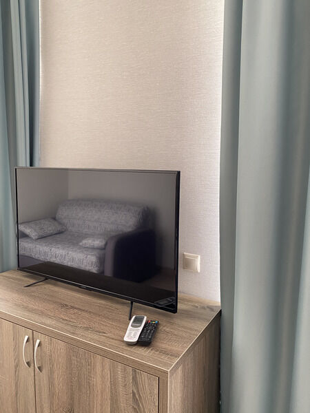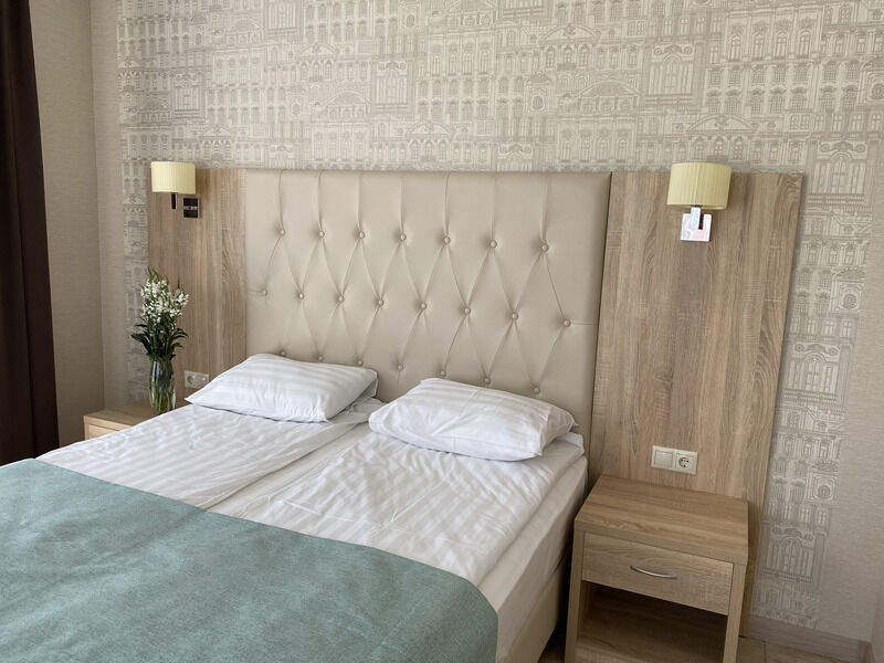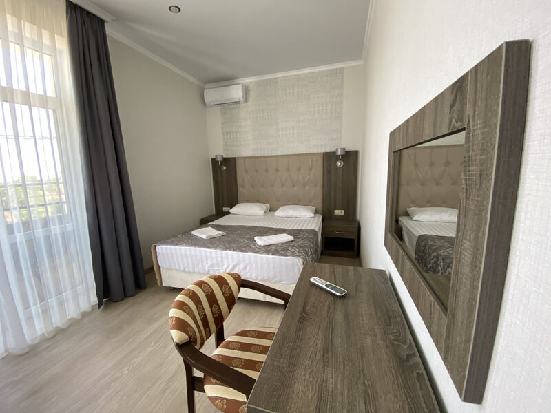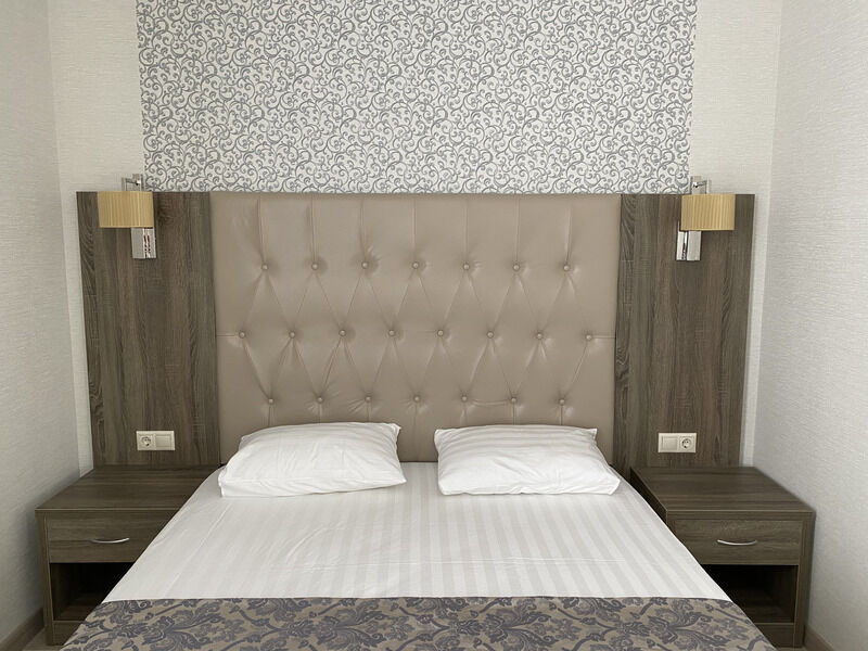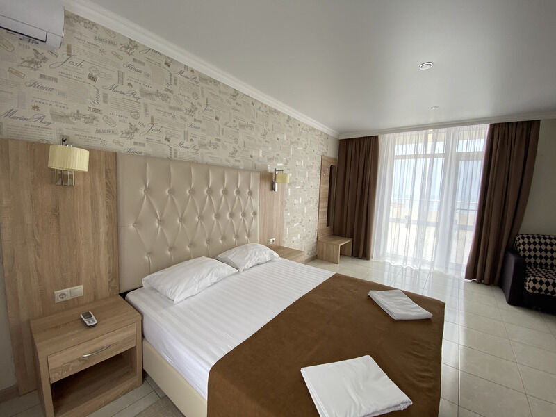 основные места - двуспальная кровать и раскладной диван, с/у с душем, ТВ, мини-холодильник, К