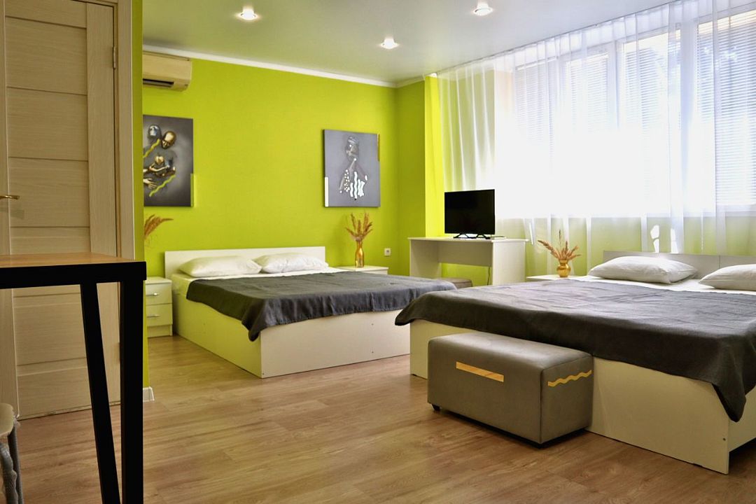 Стильный и современный однокомнатный номер. Подходит для размещения семьи или большой компании.