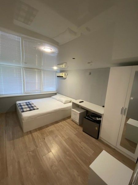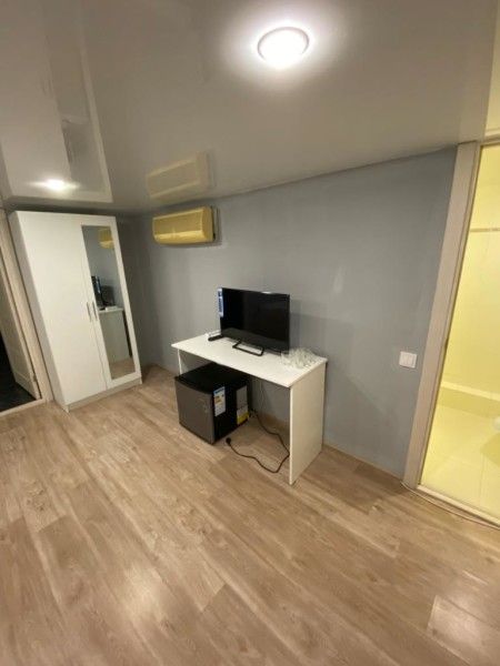В номере: телевизор, кондиционер, холодильник, плита, микроволновка, рабочий стол, ванная комната с душем и косметическими средствами. Номер как полноценная квартира.