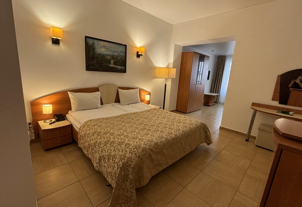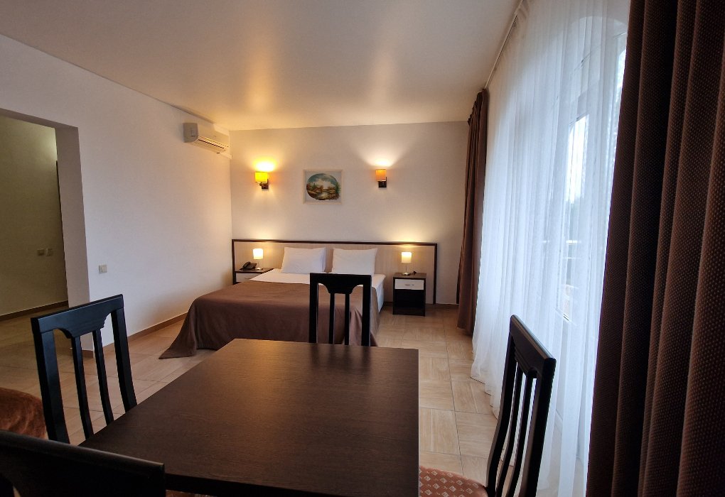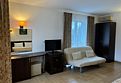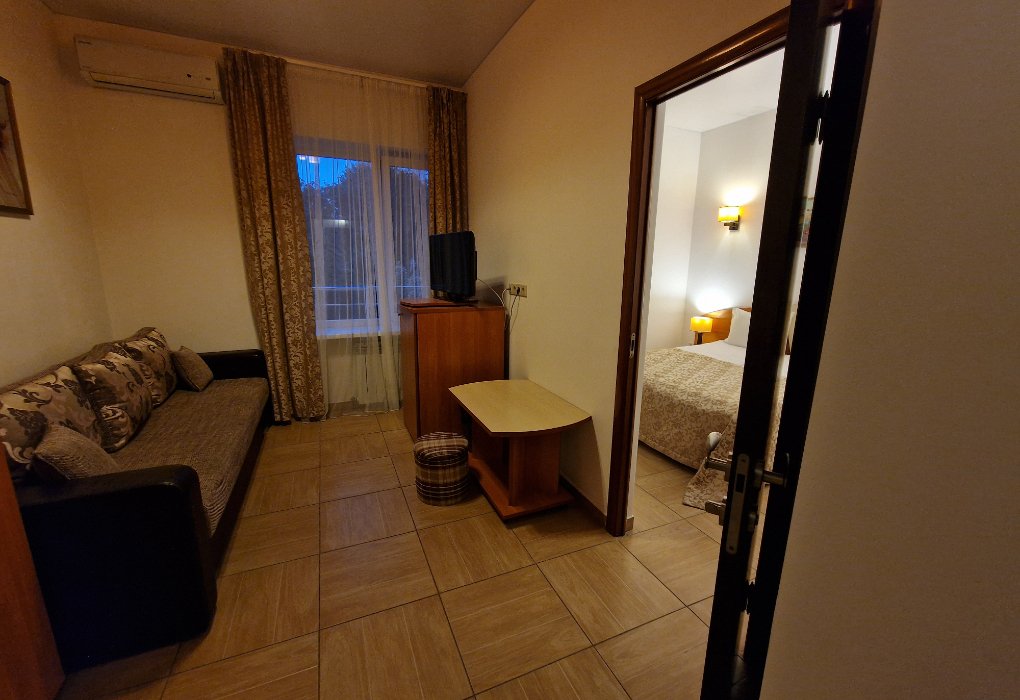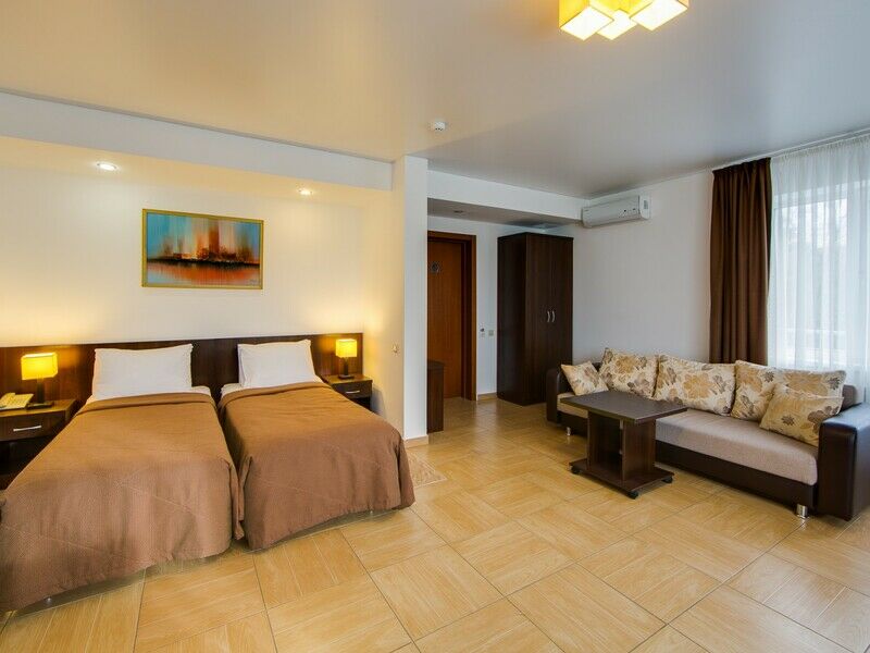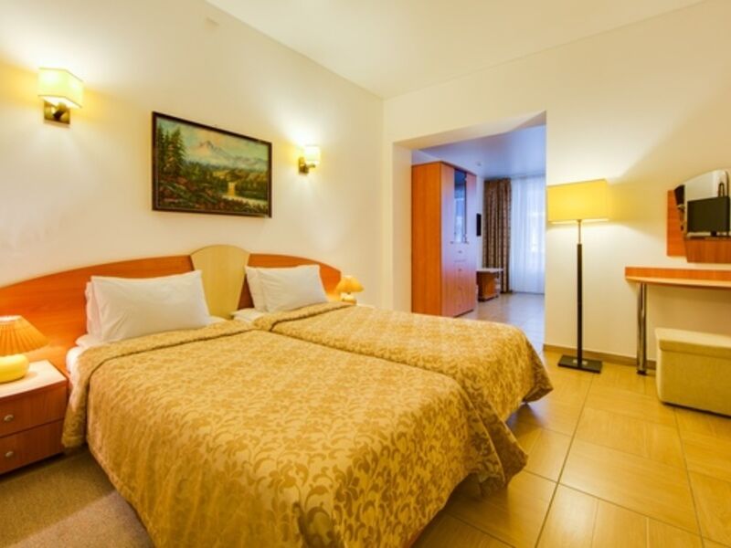номера без межкомнатных дверей, между комнатами арка; номера расположена на 2 этаже; в качестве основных мест одна 2-спальная кровать (по желанию кровати можно раздвинуть)Услуги и удобства