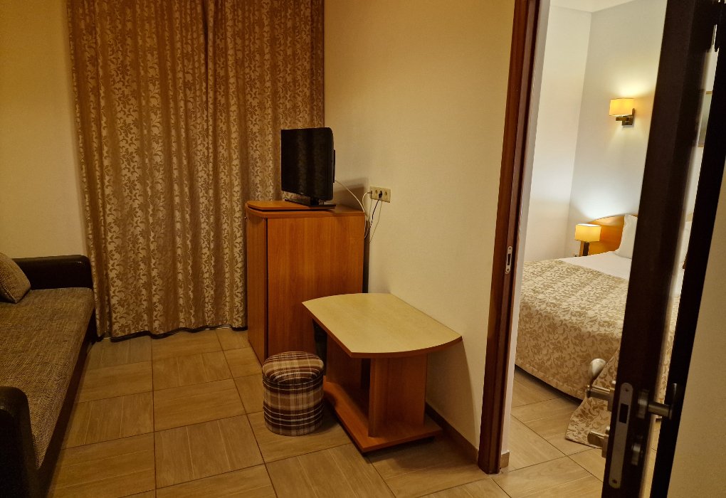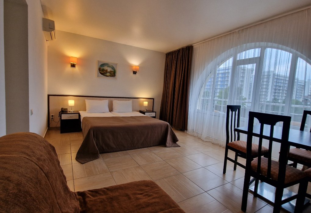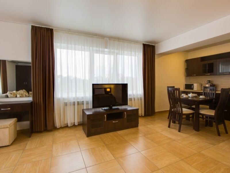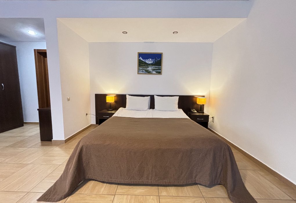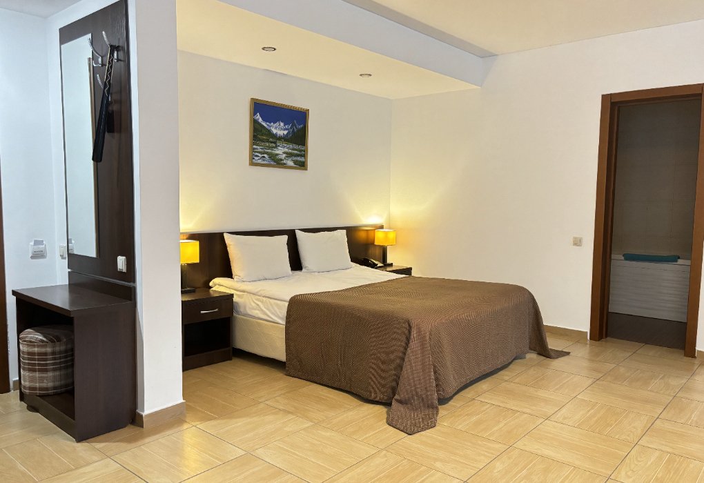 номера без межкомнатных дверей, между комнатами арка; номера расположена на 2 этаже; в качестве основных мест одна 2-спальная кровать (по желанию кровати можно раздвинуть)Услуги и удобства