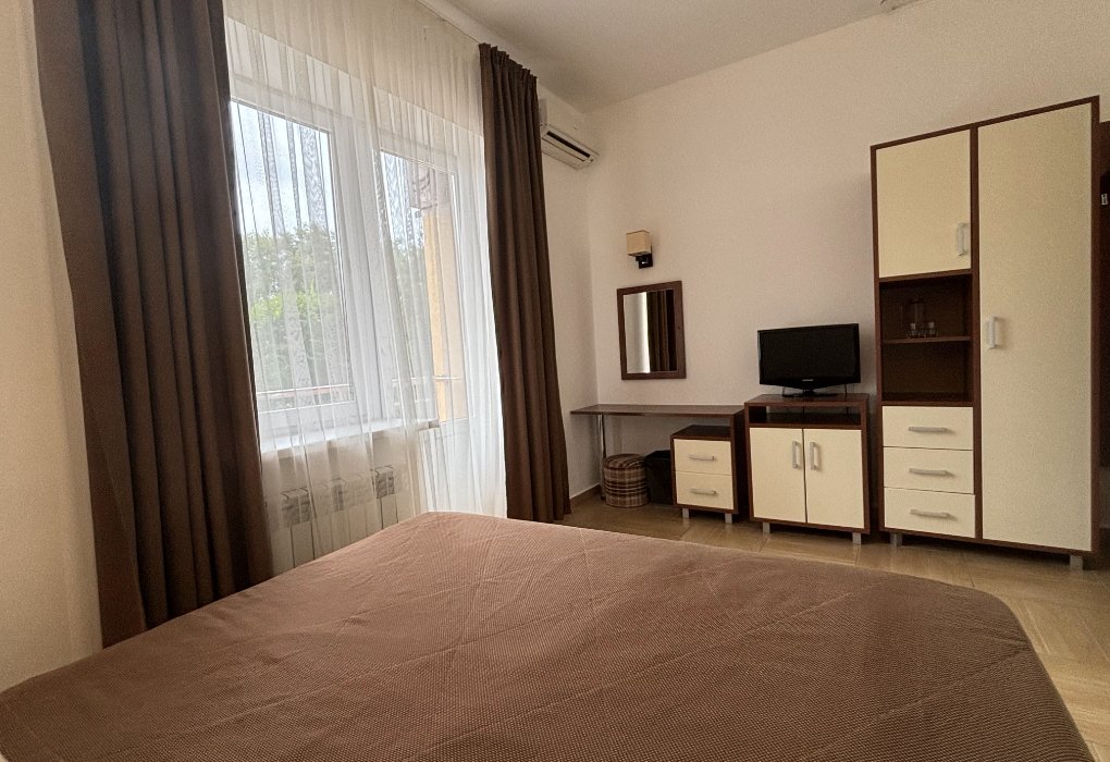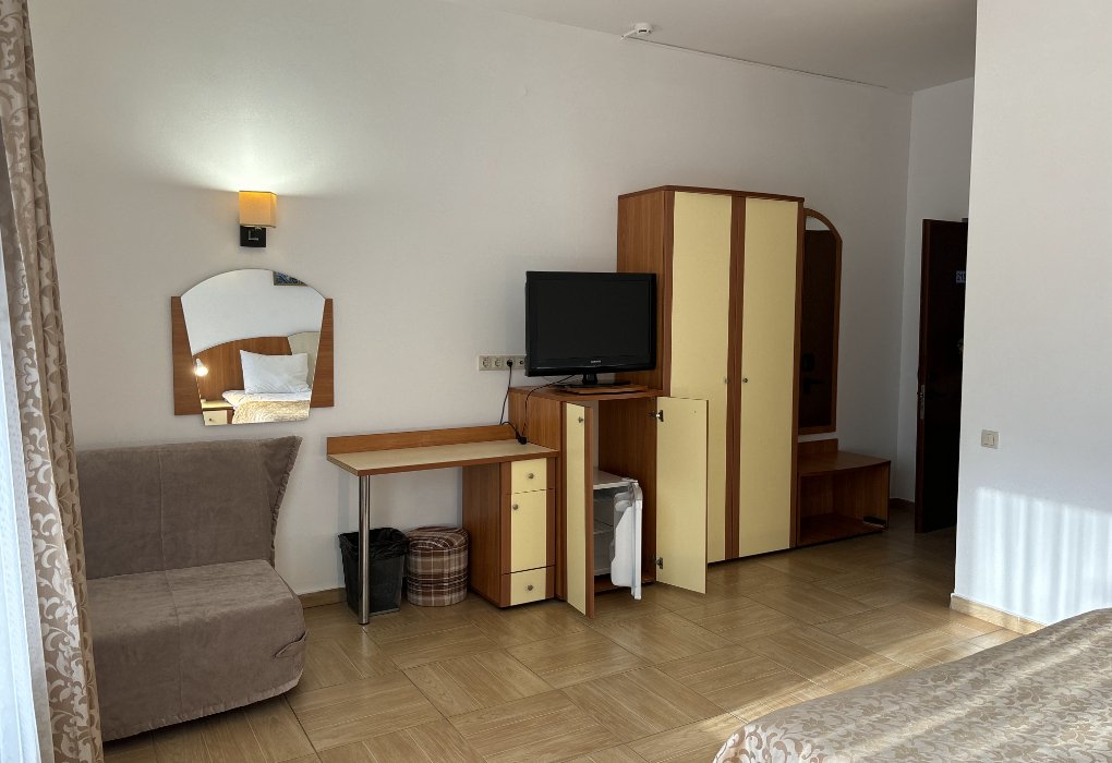Путешествие с семьейОтличный пансионатВ пансионате отдыхаем уже во второй раз. В 2021 году тоже здесь отдыхали и вернулись снова. Очень нам нравится это место )) Номера уютные, все есть, первый раз окна выходили во двор на парковку, в этот раз на Пионерский проспект, оба варианта норм. Еда вкусная, сытная очень. В пансионате можно постирать вещи, на нижнем этаже две стиралки и порошок предоставляют все бесплатно , на каждом этаже по две гладильные доски с утюгами. Бассейн подогреваемый на территории, территория ухоженная, везде качельки-лавочки, кресла-мешки, раз три в неделю анимация, но сын не захотел ни разу туда идти, может потому что одни девочки обычно там участвуют) Есть детская и спортивная площадки, велосипеды, тенистый стол, бильярдный стол. До моря правда идти минут 7 где то, и.к. пансионат на 2-й береговой линии находится, но прогулка тоже не помешает. Пляж не сильно загружен, пройти можно только по пропускам-картам пансионата и ли по браслетам которые выдают при заселении. Лежаков хватает. Персонал вежливый, реагирует на любые просьбы сразу же, уборка ежедневная, белье меняют раз в 3 дня. В общем место хорошее, в которое хочется вернуться.