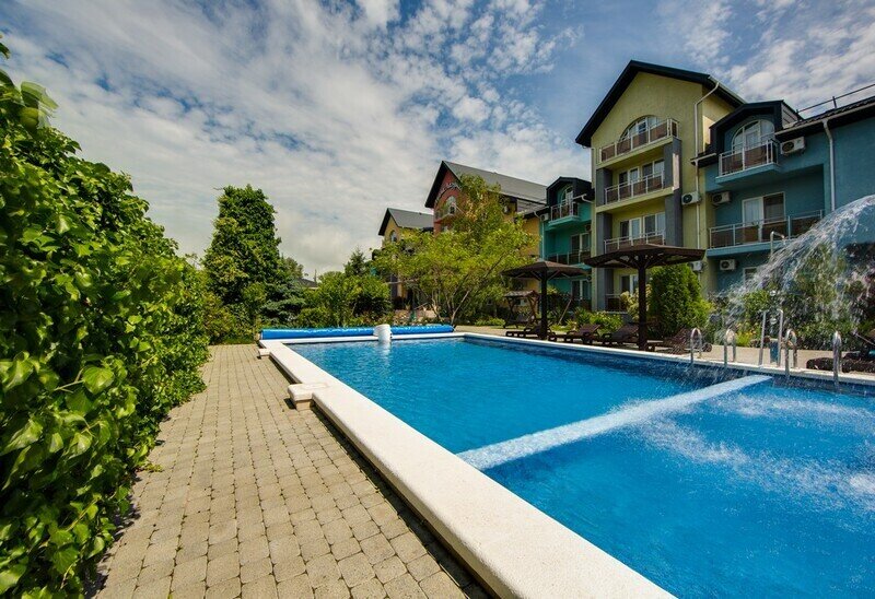 Пансионат «Анапа Лазурная» находится в самом центре Пионерского проспекта всего в 10 минутах ходьбы от знаменитого песчаного пляжа Джемете. В шаговой доступности Дельфинарий «Немо», аквапарк «Тики-Так», магазины сувениров и пляжных аксессуаров. Территория пансионата находится под видеонаблюдением и круглосуточной охраной, а доступ в номер осуществляется по электронным картам-ключам. Все номера оформлены в классическом стиле и оборудованы: сейфом, Wi-Fi, ванной комнатой с душем, кондиционером, холодильником. На каждом этаже находится кулер с холодной и горячей водой. В летний сезон отдых в Пансионате «Анапа Лазурная» будет радовать различными услугами. Организовано трехразовое питание с элементами шведского стола, для всех гостей предлагаем блюда Европейской кухни. В Лобби-баре можно заказать коктейли и прохладительные напитки. К услугам гостей открытый плавательный бассейн. Огромное значение уделено отдыху самых юных гостей. Для детей предусмотрена детская комната с воспитателем, детская игровая площадка, детская анимация.