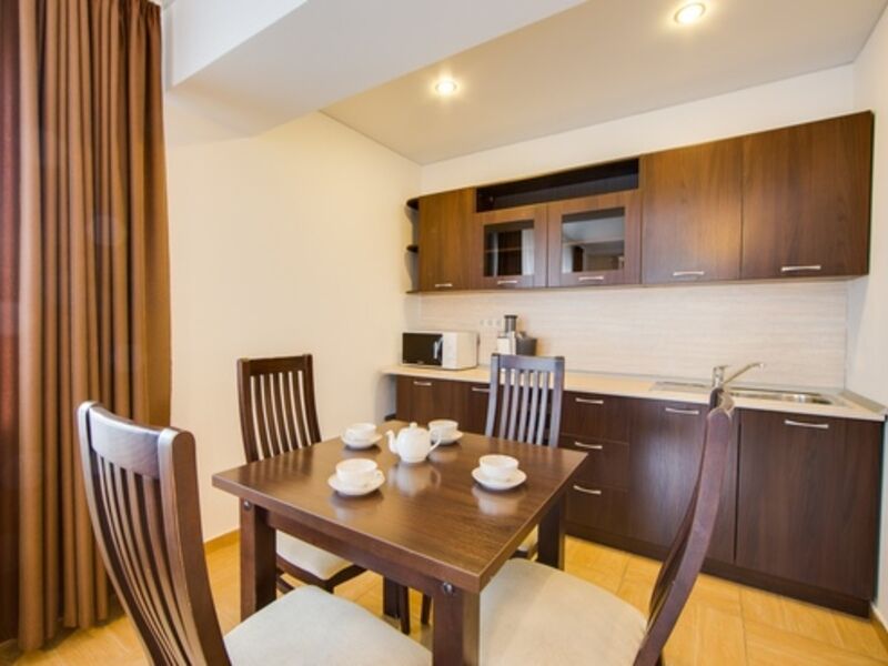 номер расположен на 4 этаже; в качестве основных мест одна 2-спальная кровать ( по желанию кровати можно раздвинуть); набор посуды; обеденная группаУслуги и удобства