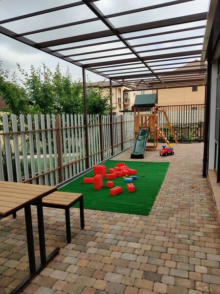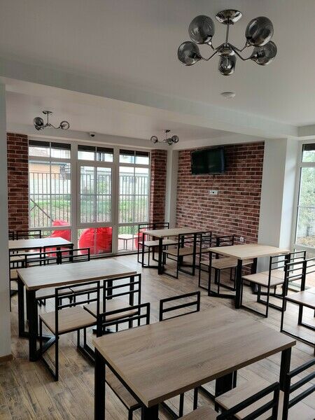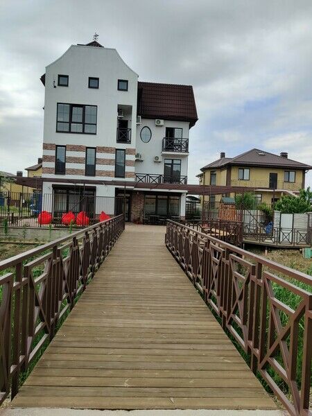 На территории гостевого дома организована зона барбекю с беседками и мангалами, среди услуг высокоскоростной интернет, охраняемая парковка, а также детская площадка с батутами, горками и качелями.