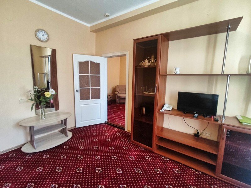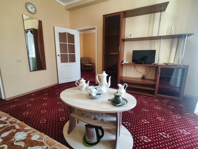 Что может быть лучше, чем иметь свою гостиную и спальню? В номере могут разместиться до четырёх человек, и есть возможность установить дополнительное спальное место. Здесь есть всё необходимое для комфортного отдыха и уединения с собой.