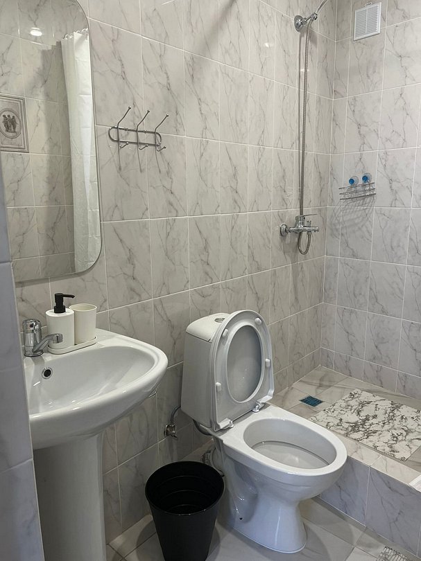 Общая ванная комната: душ, раковина, туалет.