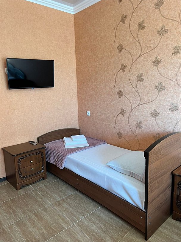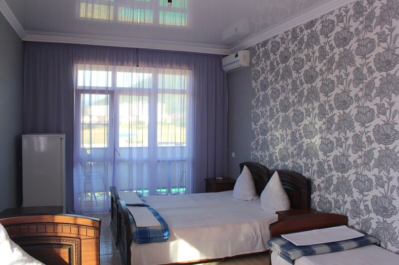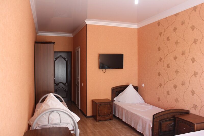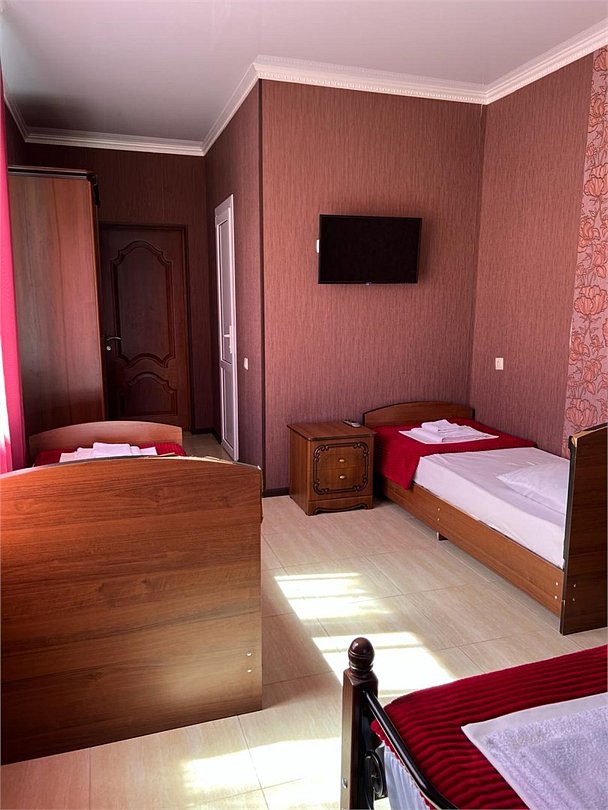 В номере 4 односпальные кровати, кондиционер, телевизор, холодильник, 4 тумбочки, 1 стул, журнальный столик, шкаф Душ туалет общий на 3 номераУслуги и удобства