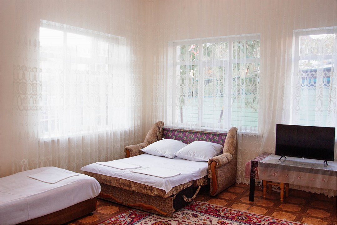 В номере 3 раскладывающих дивана, 2 одноместные кровати, кондиционер, телевизор, холодильник, 2 тумбочки, 1 стул, журнальный столик, шкаф Душ туалет общий на 3 номераУслуги и удобства