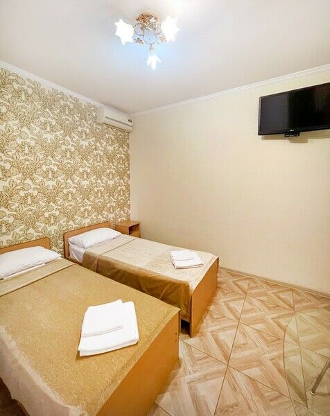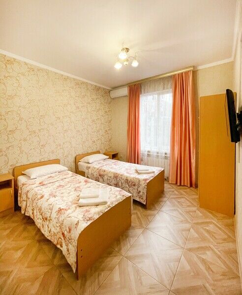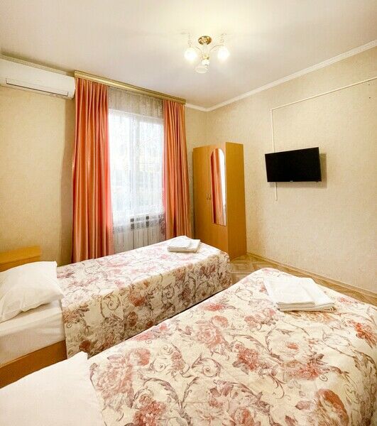 Путешествие с паройЧистота и тишина главный плюсЗаезжали на одни сутки, номер на двоих, достаточно места, кухня и 2 ванные комнаты на один этаж, машину поставили рядом с гостиницой, в номере есть бесплатный wi-fi и ж/к телевизор, дворик для отдыха со столиками, магазины, олимпийский парк и столовая рядом,и самое главное приветливые и добросовестные хозяева)) (случайно было оставлено дорогое кольцо в номере, позвонили и вернули) вообщем все хорошо, советую остановиться!