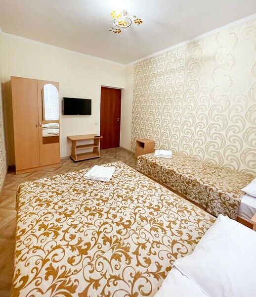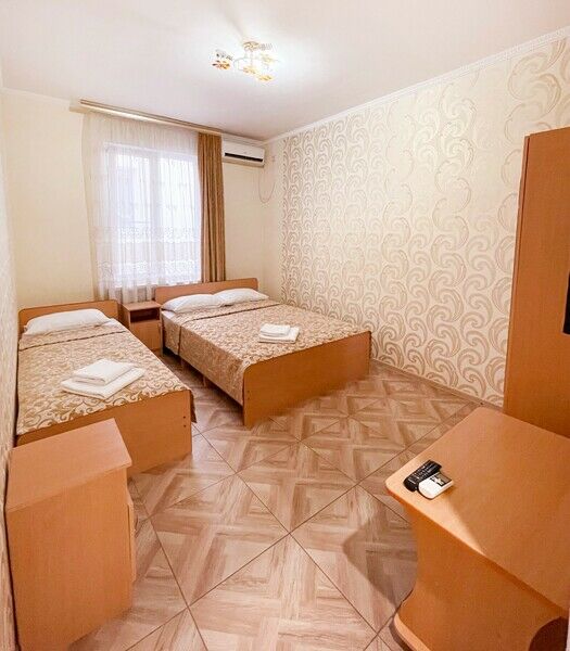 На территории есть зона отдыха на свежем воздухе, также имеется мангал. Два корпуса, в одном из которых есть большая столовая зона с кухней, семейные номера с балконом и трехместные номера с балконами. Во втором корпусе представлены номера эконом и бюджет класса, на этаже эконом-класса две душевые комнаты с туалетом и общей кухней. Уборка общих санузлов проводится ежедневно. В гостевом доме всегда поддерживается порядок в номерах, местах общего пользования и на территории. Все номера оборудованы кондиционерами и телевизорами.
