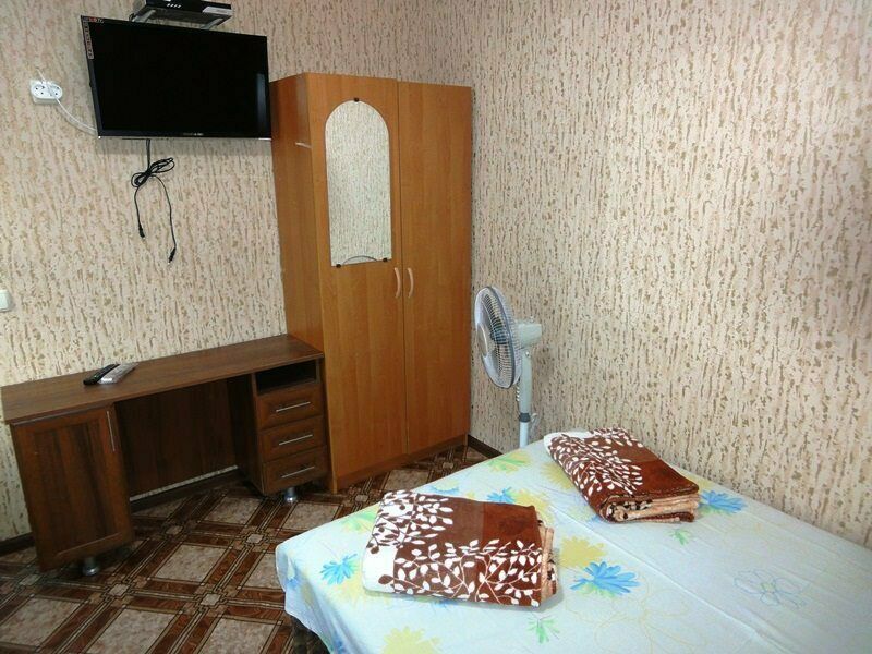 Односпальные или двуспальная кровати, шкаф, прикроватные тумбочки, зеркало, вентилятор, телевизор (наличие уточнять), балкон. Удобства на этаже.