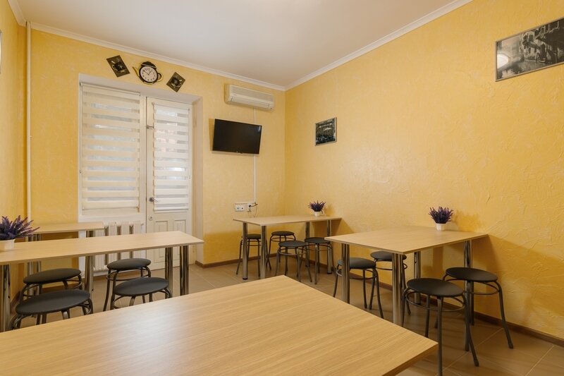 Имеется просторная столовая, где постояльцев угощают вкусными блюдами домашней кухни по приемлемым ценам.