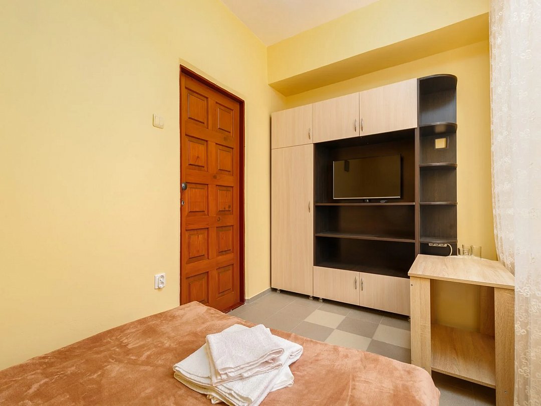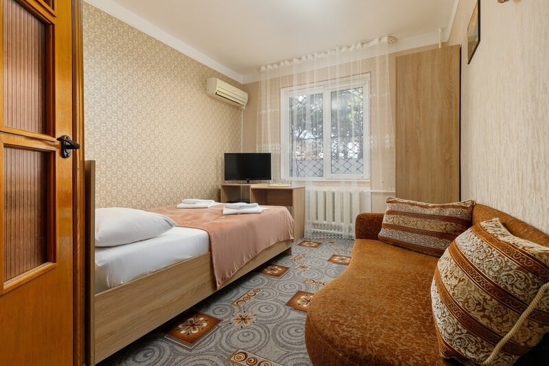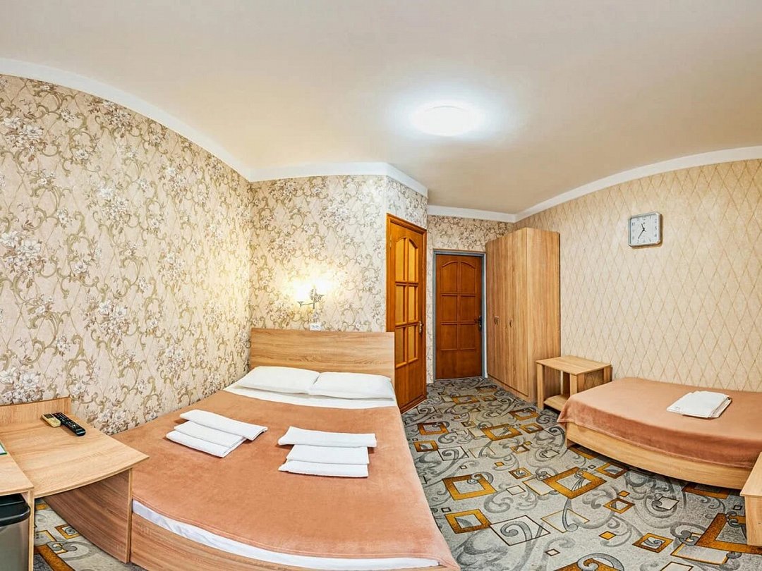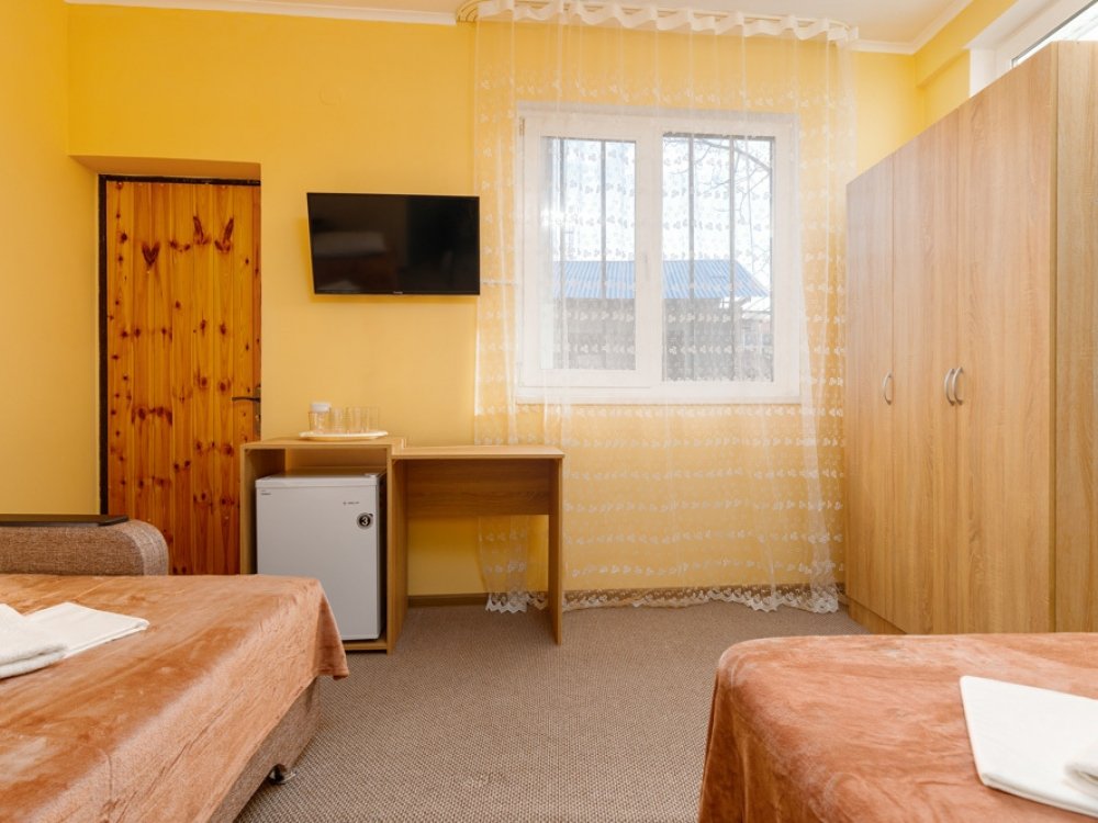 О номереУютный номер бюджетной категории с тремя односпальными кроватями, рассчитанный на проживание до трех людей. Идеальное сочетание цены и качества. Общая ванная комната и санузел на 3 номера. Ребенок до 12 лет, за доп. плату. На каждом этаже куллер с горячей и холодной водой.В номере