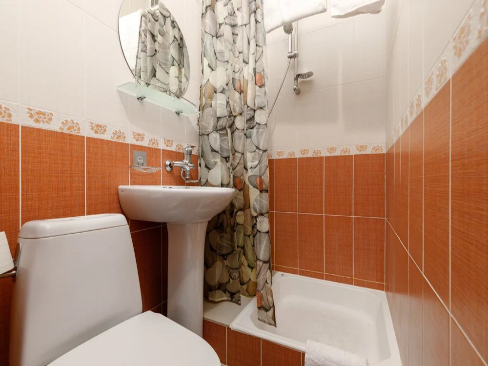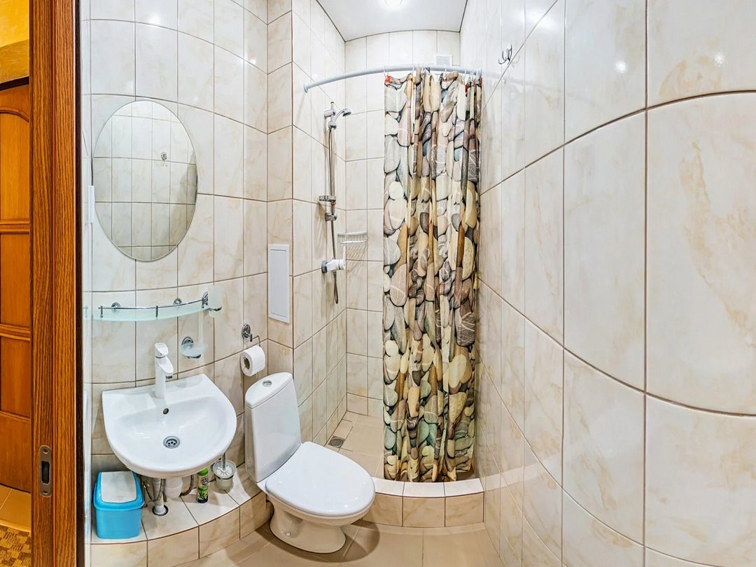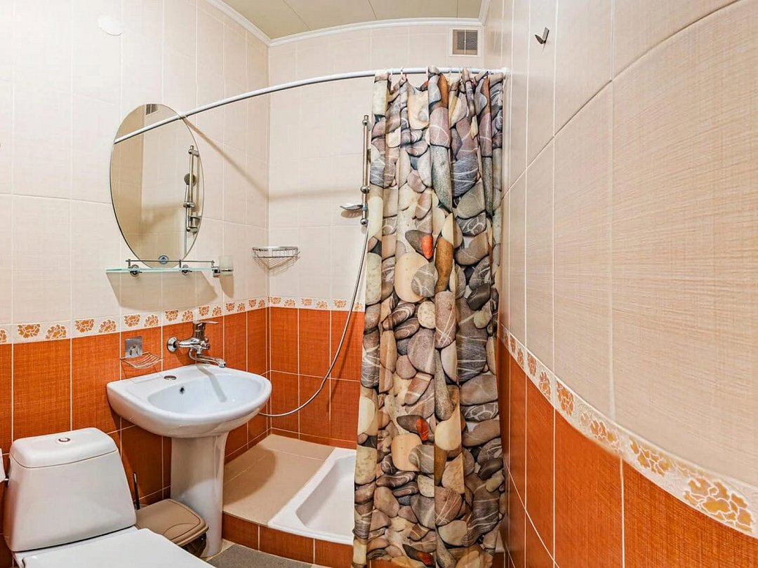 двуспальная кровать, диван, кондиционер, тв, холодильник, чайный набор посуды, отдельный вход, санузел с душем (поддон)