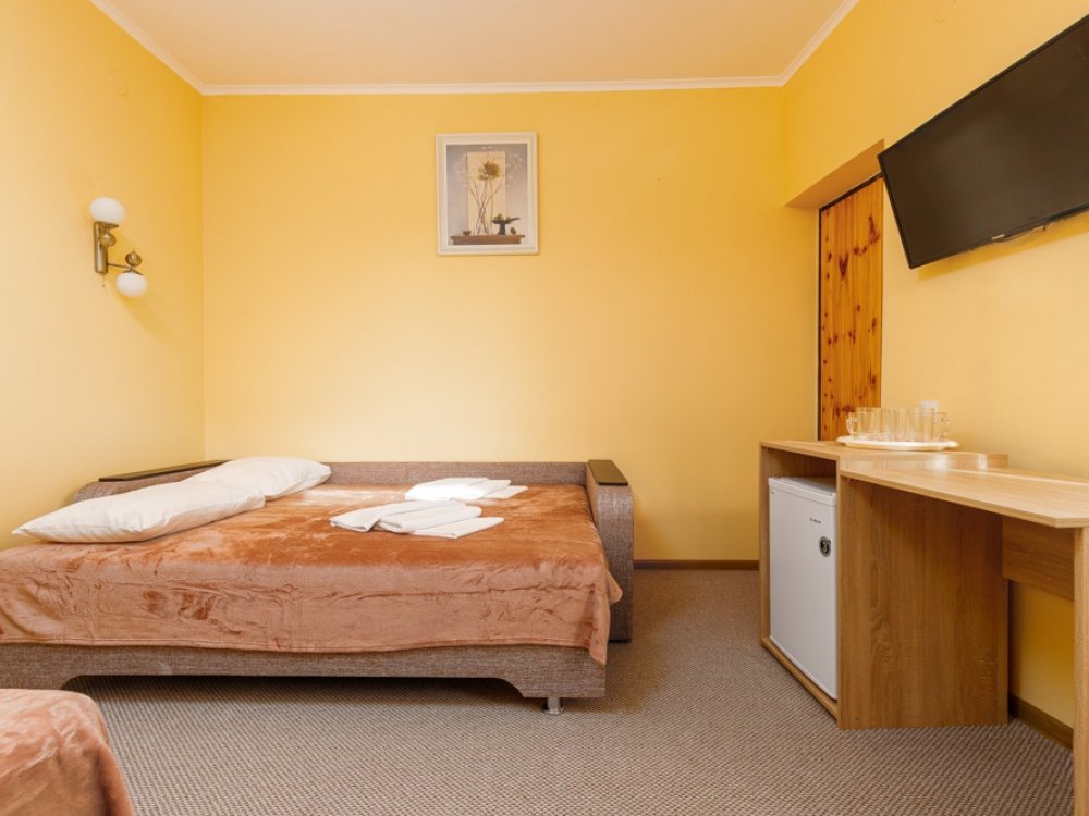 О номереУютный номер стандартной категории с двухспальной кроватью и дополнительным спальных местом , рассчитанный на проживание до трех человек. Идеально подходит для комфортного семейного отдыха с ребенком.В номере