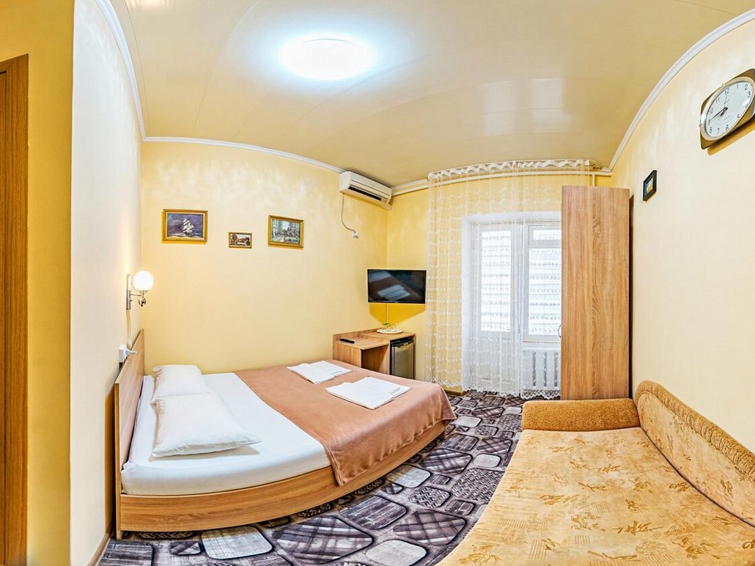 О номереУютный номер стандартной категории с двухспальной кроватью и дополнительным диваном на два места, рассчитанный на проживание до четырех людей. Идеальное вариант для семьи с детьмиВ номере