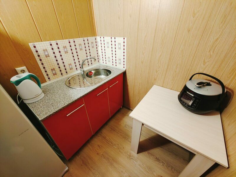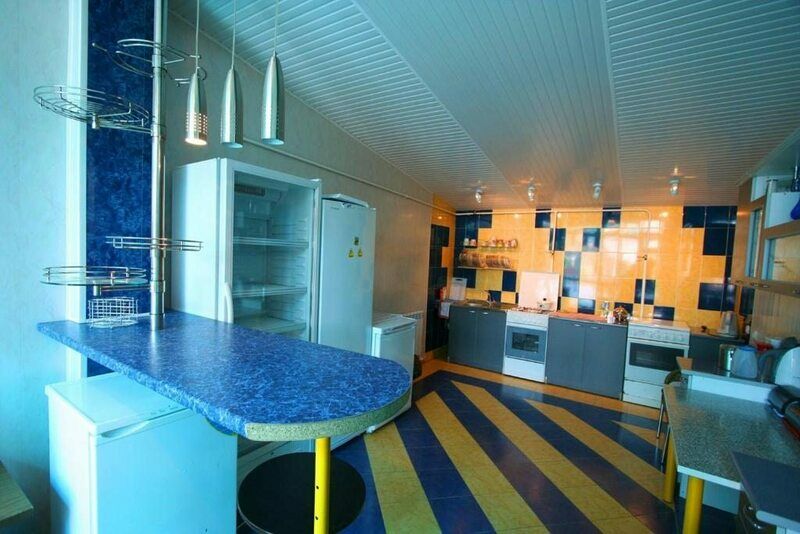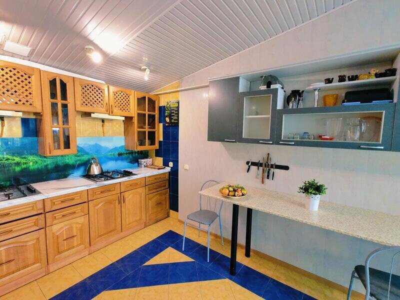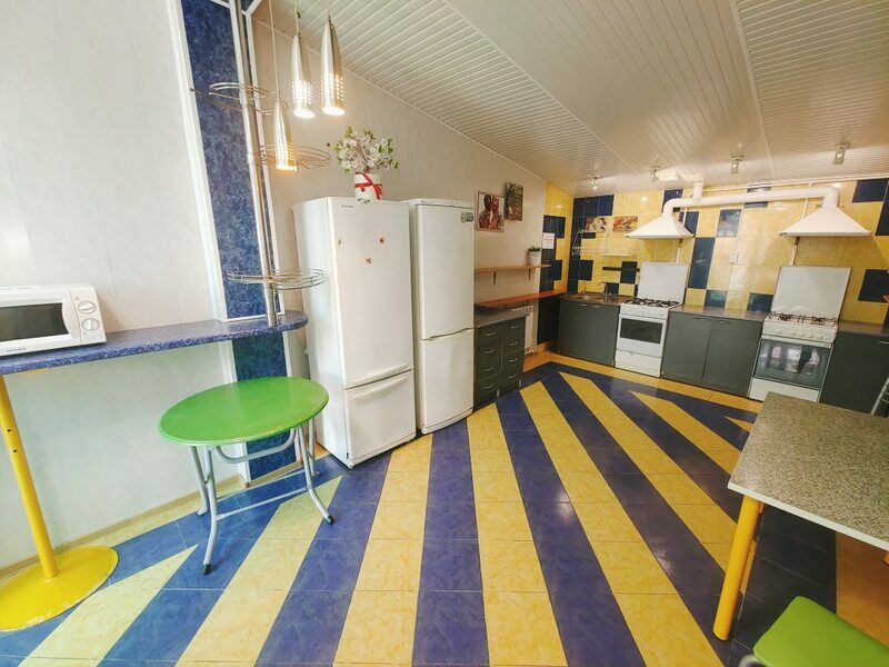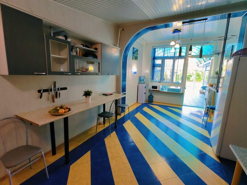 Первый этаж гостевого дома занимает просторная оборудованная общая кухня, где имеется все необходимое для приготовления пищи.