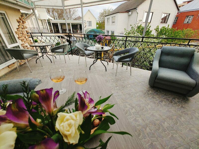 В 20 минутах ходьбы от гостевого дома находится Черное море. Территория обустроена всем необходимым для отдыха в шумной компании друзей. Расстояние до ближайшего железнодорожного вокзала — 5 км, до аэропорта — 10 км.