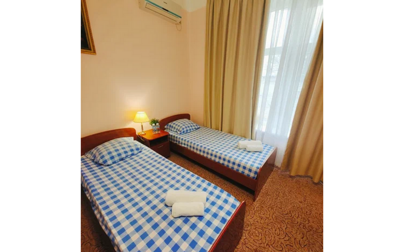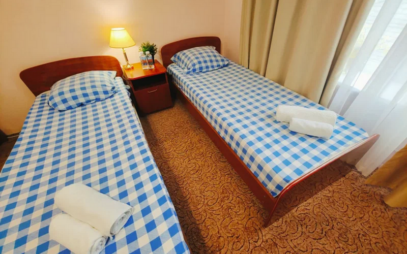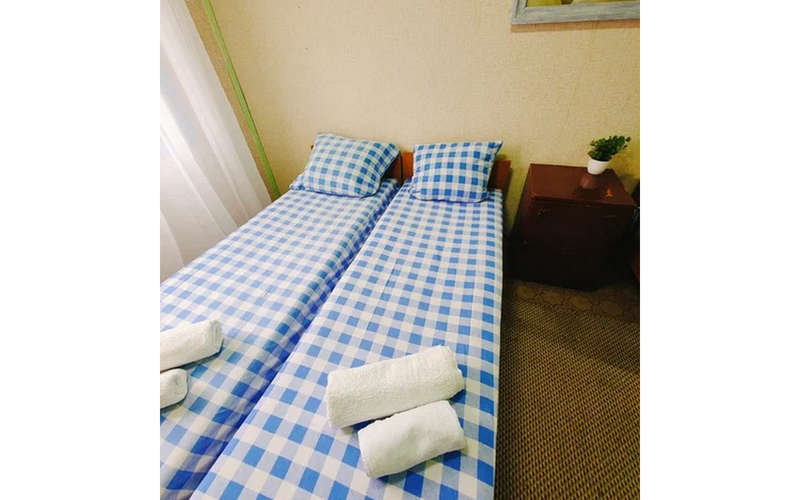 2х местный эконом с двумя односпальными кроватями. Санузел и душ общие.