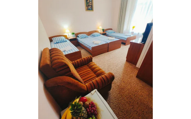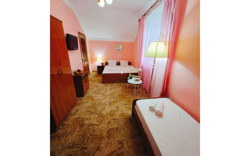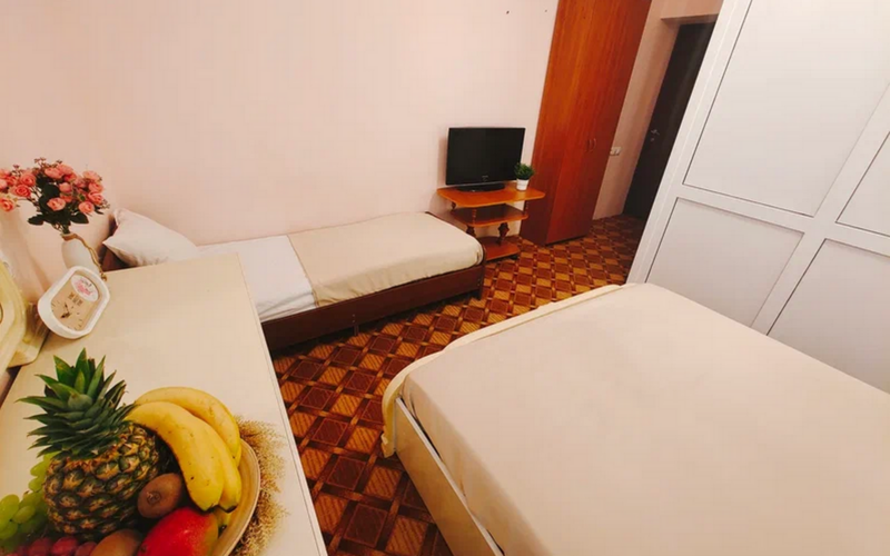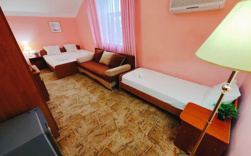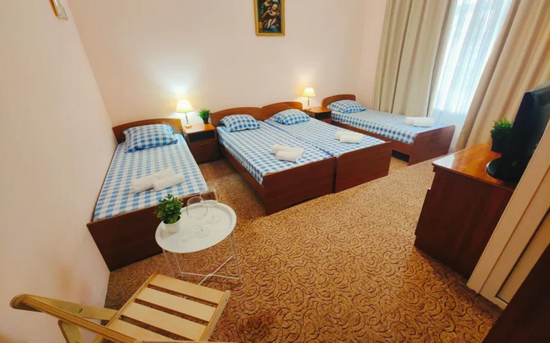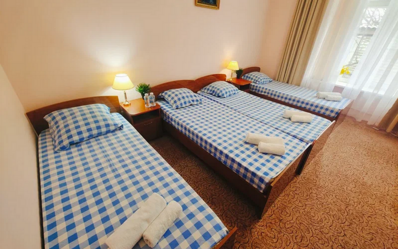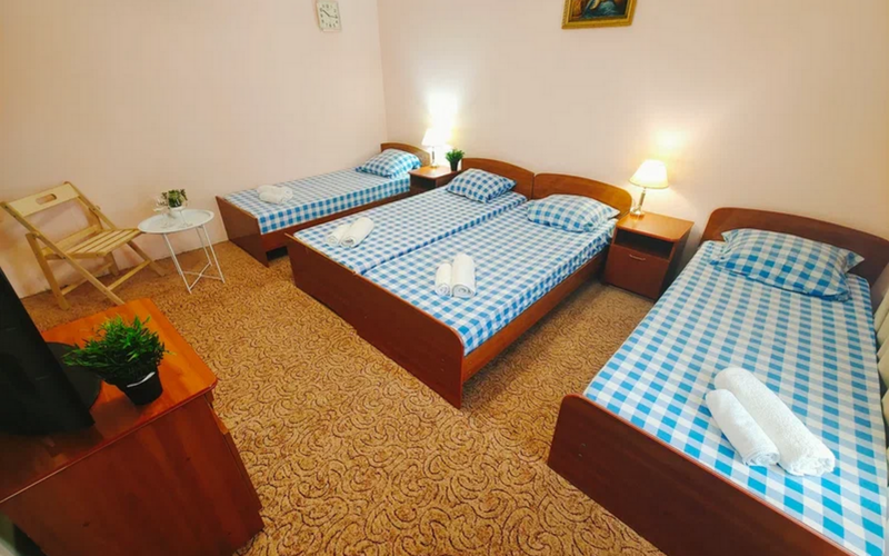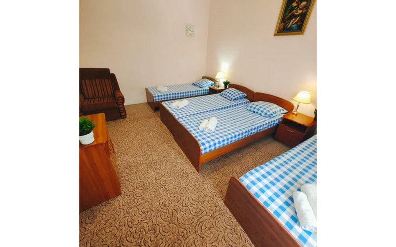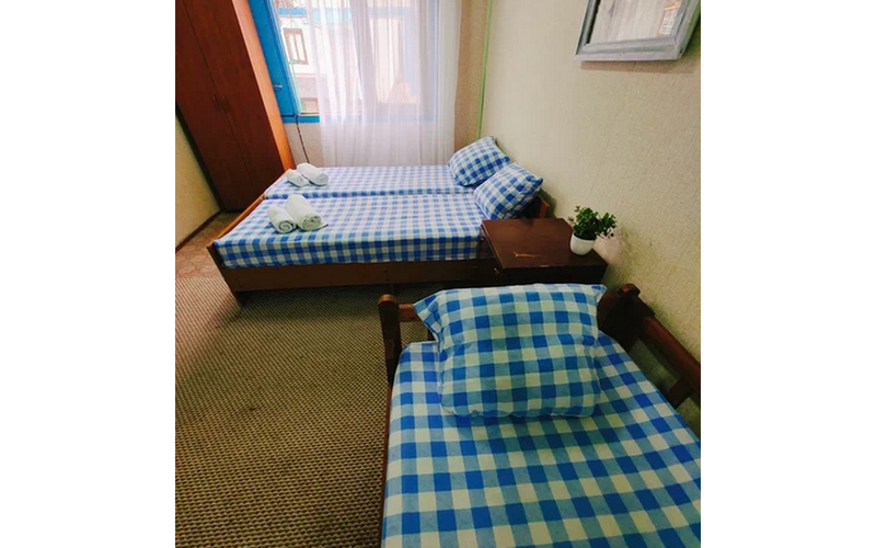 3х местный эконом с двуспальной и односпальной кроватью. Санузел и душ общие.