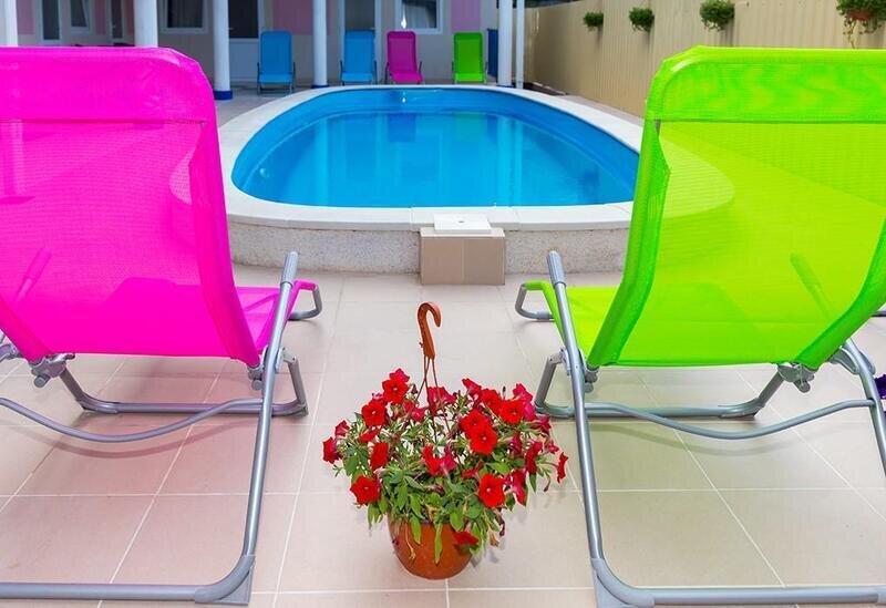 Тип бассейна: открытый бассейнВода в бассейне: подогреваемый бассейнРядом с бассейном: шезлонги, зонтикиПлощадь: 40 м²Бассейн работает с 01.05 по 01.10.
