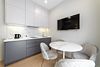 Светлые дизайнерские апартаменты с панорамными окнами в пол, стильно оформленные в серо-белой гамме, находятся на приватной территории большого комплекса. Номерной фонд состоит из двух вариантов размещения для 4 гостей каждый. Обе категории имеют похожую комплектацию: включают спальню с большой кроватью и кухню-гостиную с раскладным диваном. Предусмотрены полный набор современной мебели и техники и все, что может понадобиться при приготовлении блюд. Ванные комнаты с душевой кабиной. Из одних апартаментов открывается вид на море.