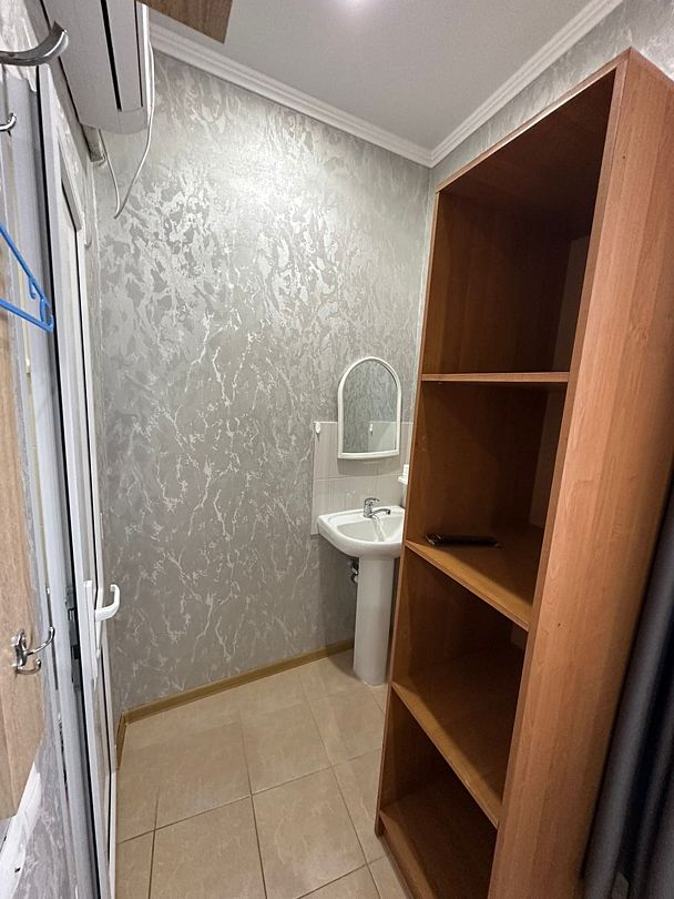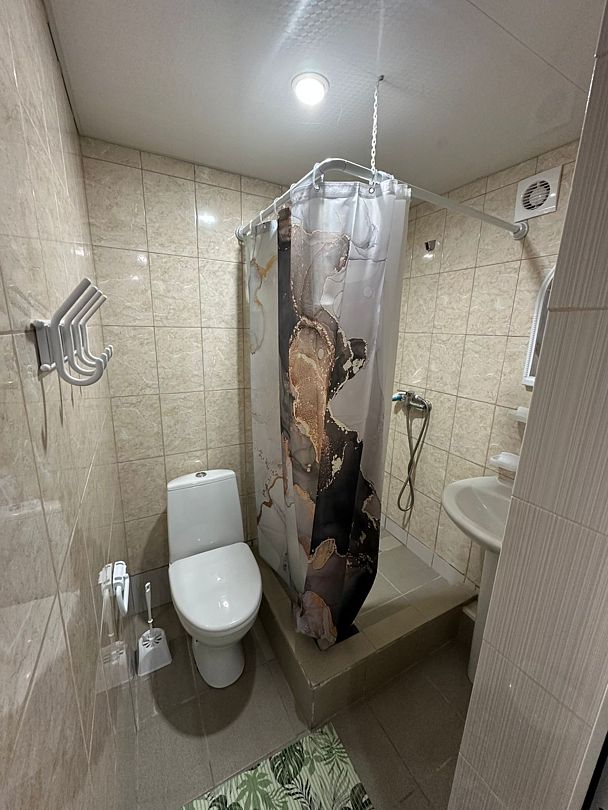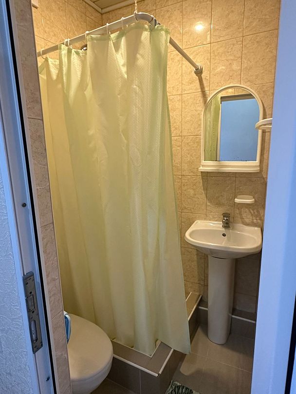 Индивидуальная ванная комната: душ, раковина, туалет.