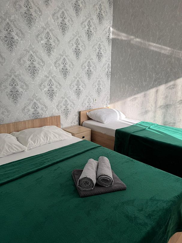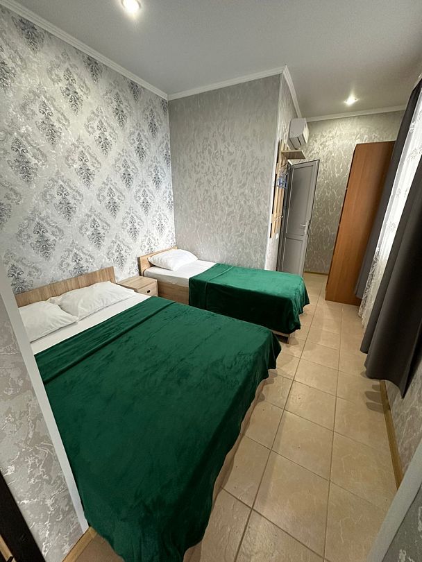 В номере: 1 двуспальная кровать и 1 односпальная кровать.