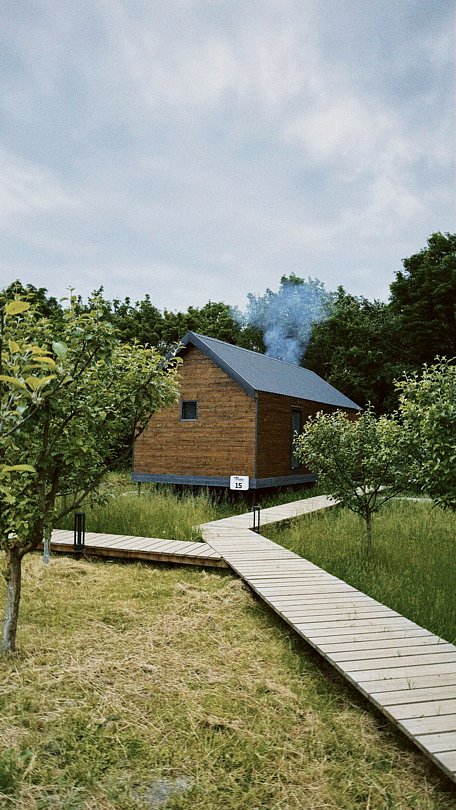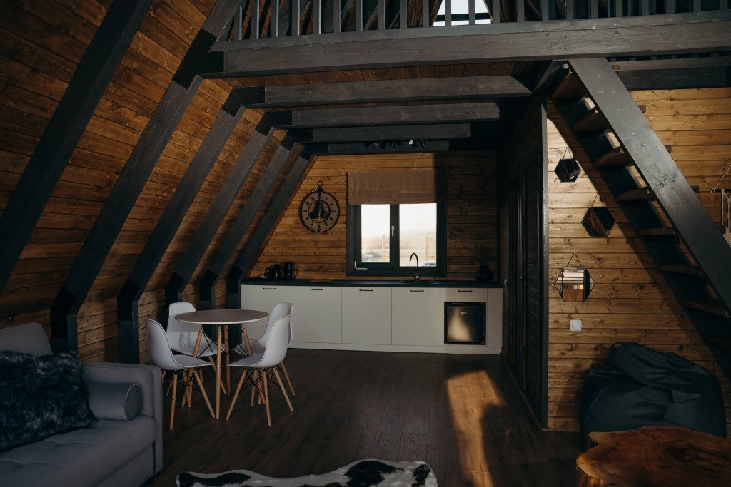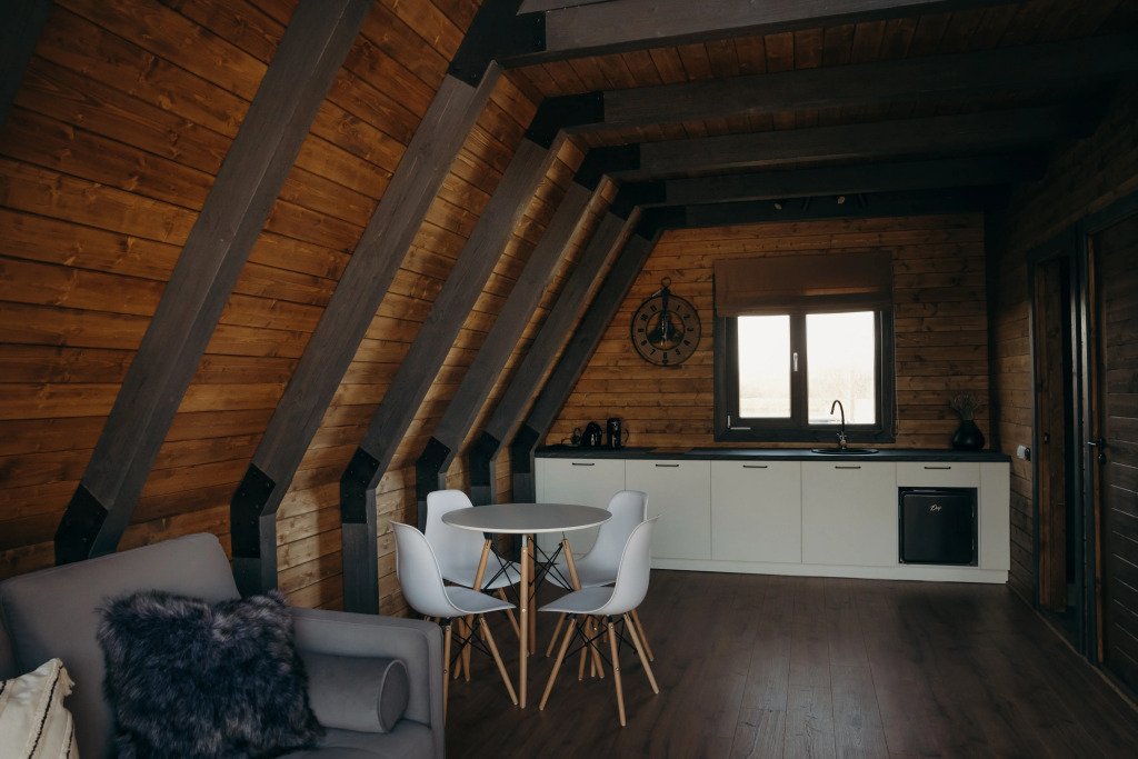 Бесспорный фаворит гостей. Двухуровневый уютный дом среди яблоневого сада с камином и полноценной кухней. Стиль, атмосфера и комфорт — слова, полностью описывающие этот дом.