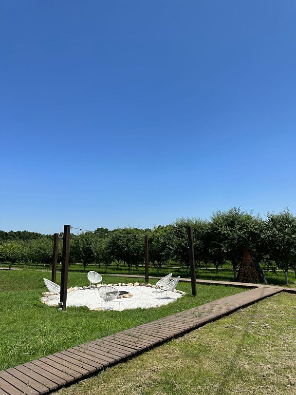 Фирменный дом, разработанный командой по собственному дизайн-проекту, вмещает до четырех человек. Стиль и любовь в каждой детали не оставят никого равнодушным. Изюминкой дома служит белая ванная с панорамным видом на яблоневый сад и индивидуальная костровая зона. Это идеальное сочетание роскоши и природной красоты.