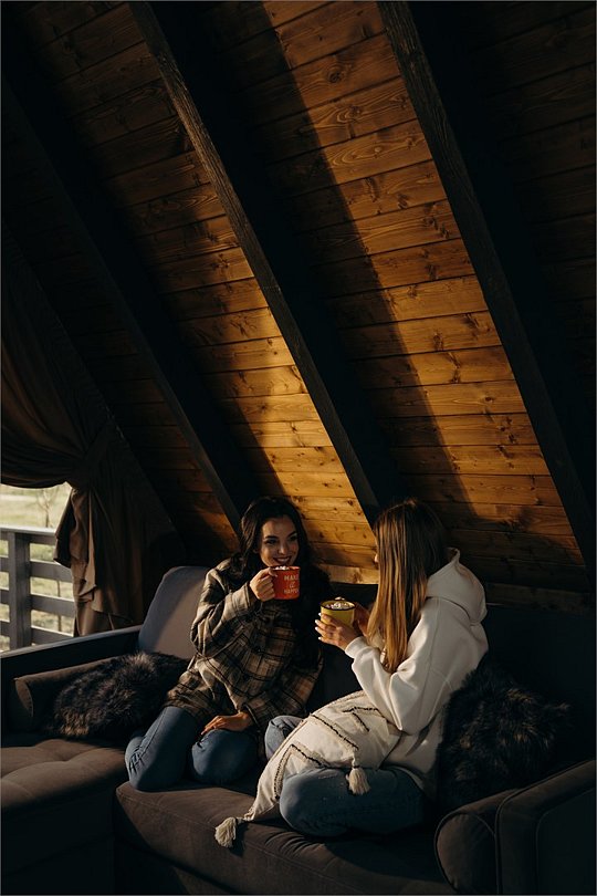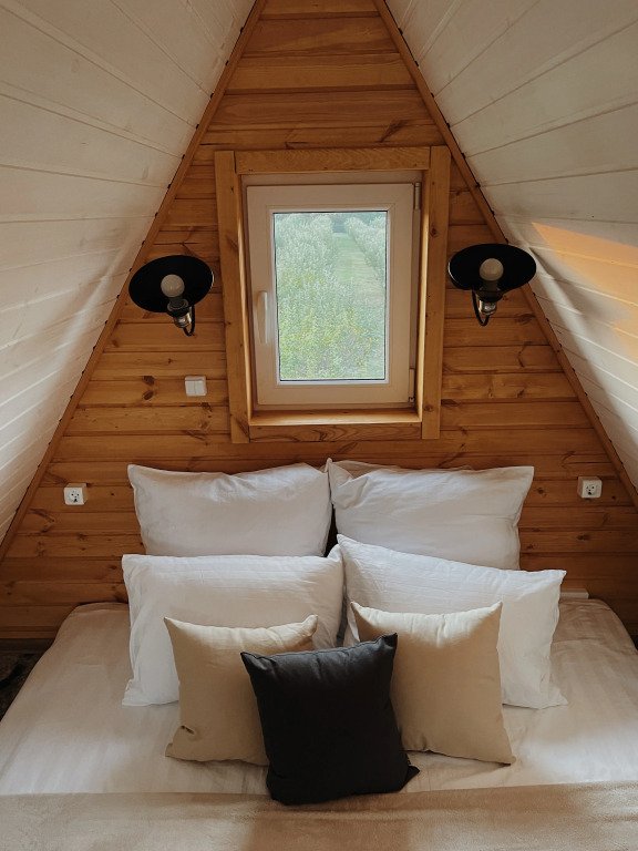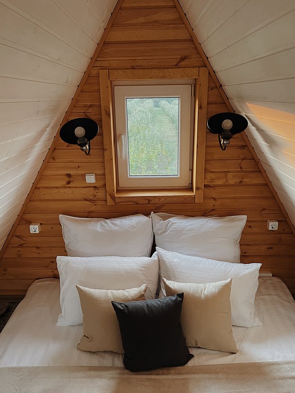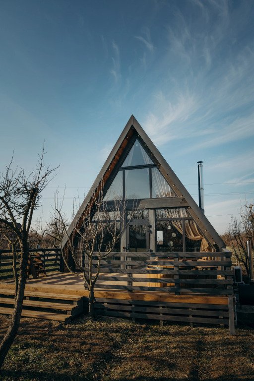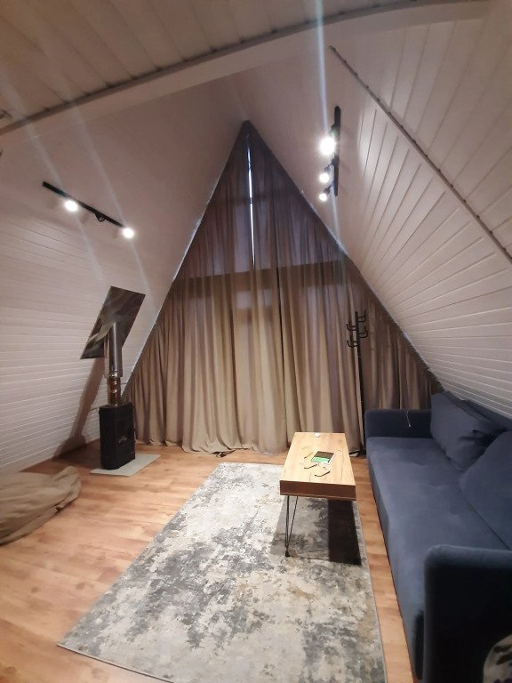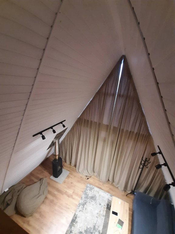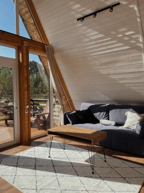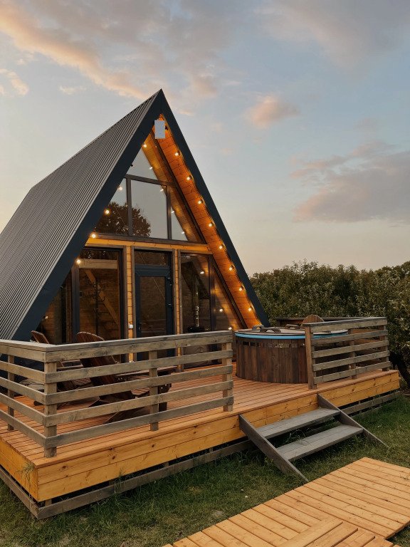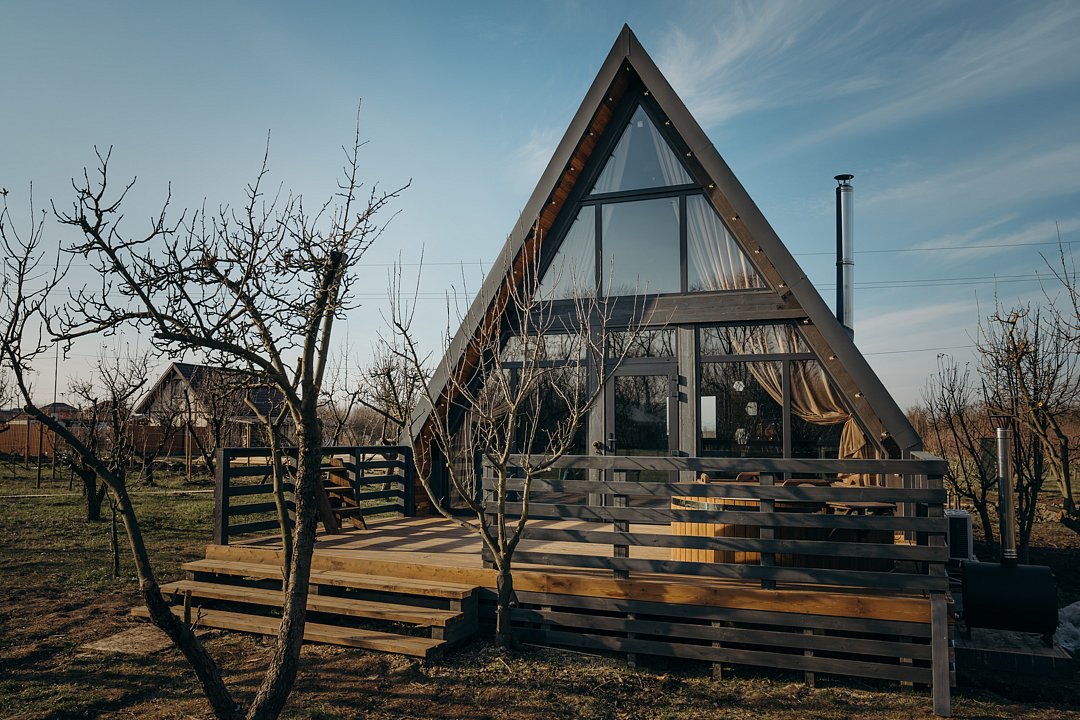 Бесспорный фаворит гостей. Двухуровневый уютный дом среди яблоневого сада, который вмещает в себя максимум четыре человека. Стиль, атмосфера и комфорт — слова, полностью описывающие A-frame.