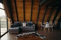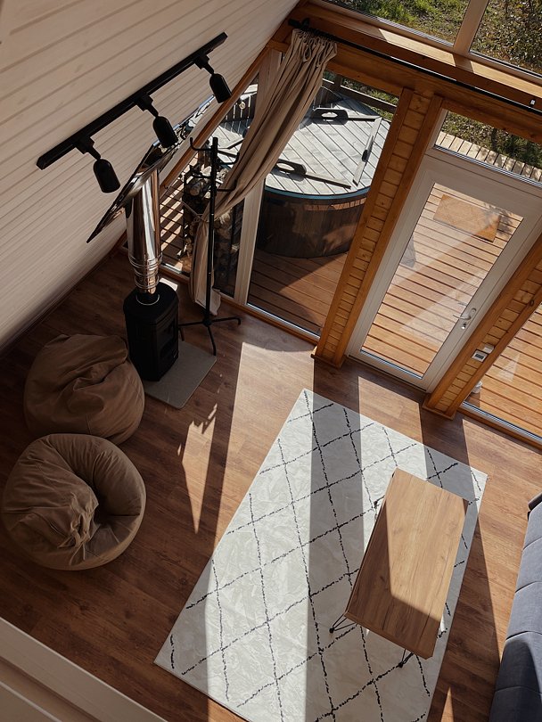 Максимальная вместимость — до трех человек. Вас ждут: японская бочка фурако на террасе, два шезлонга и зонт от солнца, BBQ-зона, раскладной диван, детская кроватка по запросу, двуспальная кровать, уютный камин, Wi-Fi, холодильник, чайник, капсульная кофемашина, полноценная кухня с плитой, набор посуды, приборы, бокалы.