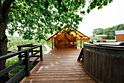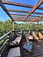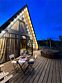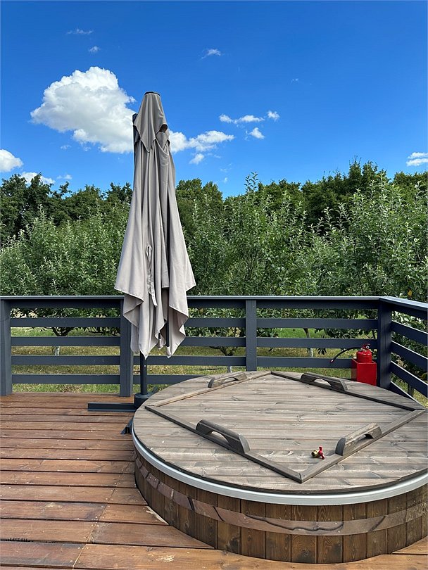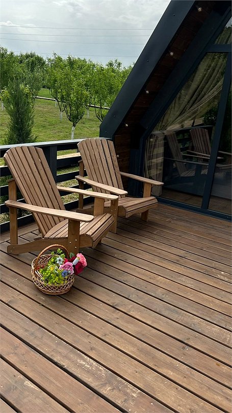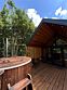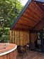 Идеальный и стильный тент! В дождливые дни у гостей этого тента есть преимущество — крыша над террасой, где вы сможете наслаждаться шумом дождя и свежестью природы. А при хорошей погоде вы можете расслабиться в собственной фурако или приготовить ужин на BBQ-зоне около домика.