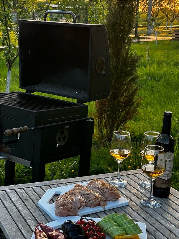 Для удобства гостей рядом с каждым домом расположены уютные барбекю-зоны — насладитесь процессом приготовления блюд на свежем воздухе и проведите приятные вечера в компании семьи и друзей.