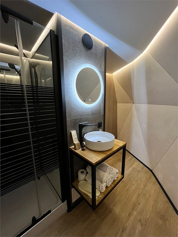 Санузел с душевой, халат / тапочки / полотенца, косметические наборы, зонты в случае дождливой погоды, отопление (теплый пол, кондиционер, обогрев на кровати).