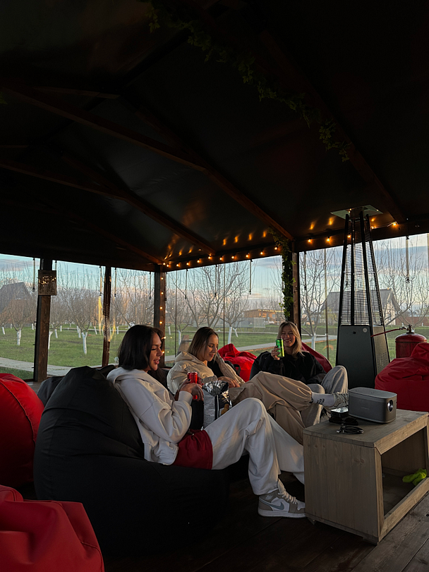 На территории глэмпинга вас ждут разнообразные развлечения. Вечером можно собраться с близкими у костра, наслаждаясь звуками природы и делясь историями под звездным небом. Для любителей кино предусмотрен открытый кинотеатр, где каждый вечер показываются фильмы на мягких креслах-мешках. А если вы ищете место для проведения тренингов или мастер-классов, площадка доступна и в дневное время.
