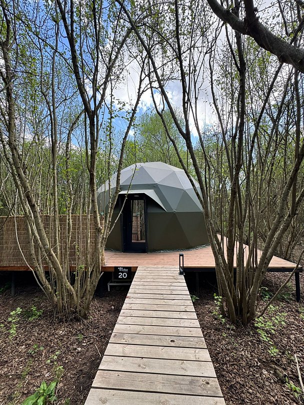 Короткий отпуск с друзьямиЯ в полном восторге, однозначно еще не раз приедем с друзьями сюда отдыхатьОтличный глэмпинг, большая территория, персонал и обслуживание топ, все помогут, расскажут, любую просьбу выполняют🔥 Спа-комплекс это отдельный вид блаженства, также можно насладиться рыбалкой и кинотеатром, а еще завтраки в ресторане, кстати, очень вкусная кухня, советую посетить и ресторан дополнительно😍