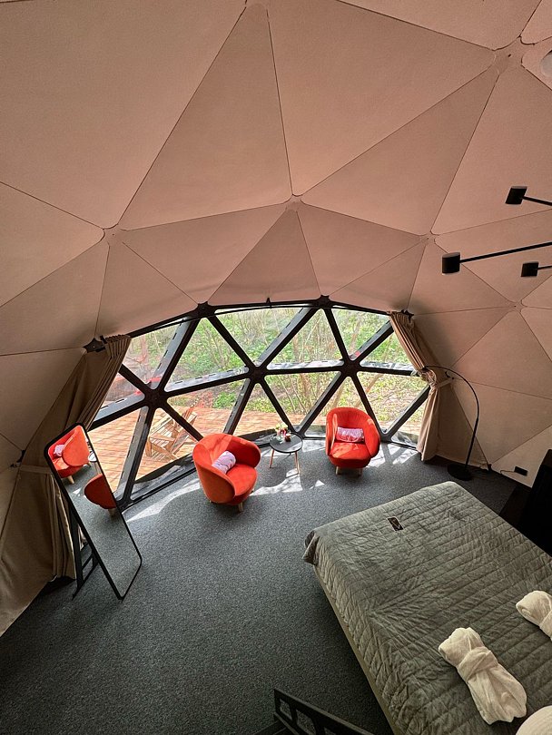 Путешествие с паройЛучший отдых. Отличный сервис. Классный ресторанВпервые были в этом глемпинге, остались очень довольны, все продумано до мелочей. На территории спа комплек, ферма с альпаками, кинотеатр, бассейн, ресторан. Были два дня, ни в чем не нуждались. Отдохнули невероятно. 😍