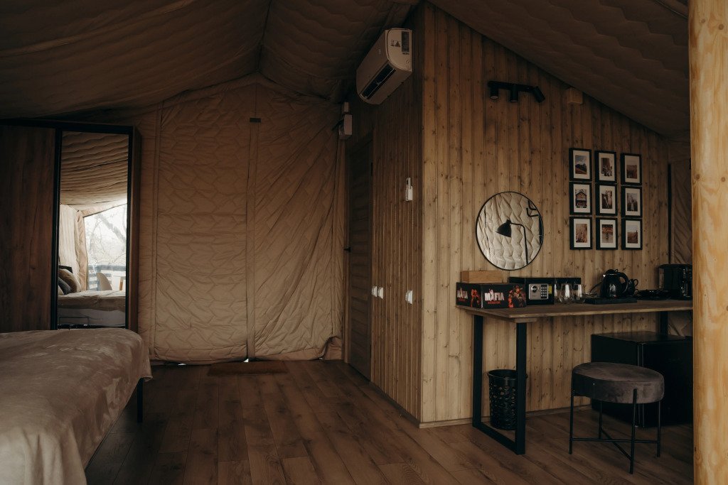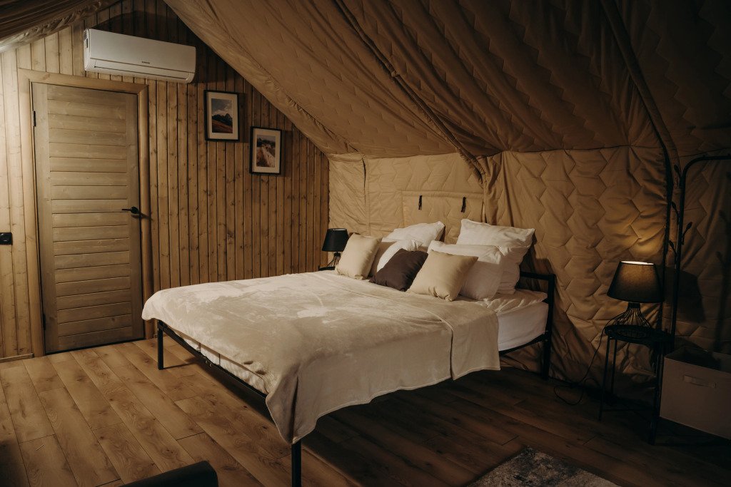 Уютный дом в стиле глэмпинга перевернет ваше представление о палаточных домах. Тут вы найдете все необходимое для комфортного проживания, как для двоих гостей, так и для четырех.