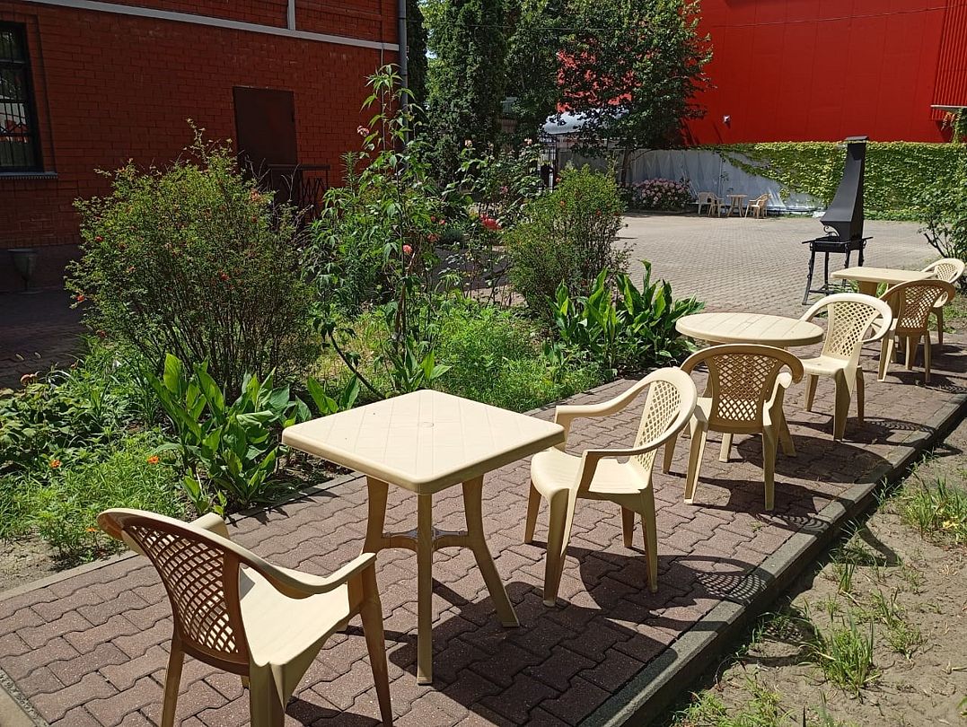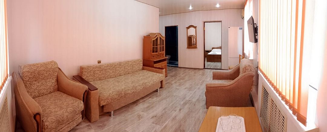 телевизор, Wi-Fi, холодильник, светильник, банные полотенца, двуспальная кровать, диван, кресла, тумбы, шкаф для одежды, журнальный столик, зеркало, чайник, унитаз, раковина, мягкая мебель, душ, кресло, вид во двор, стул, туалет, сплит-система, мангал, принадлежности для барбекю, сушилка для белья, раскладной диван, двуспальный раскладной диван-кровать, два раскладных кресла, уборка номера, вешалки-плечики, без питомцевВ гостиничном номере