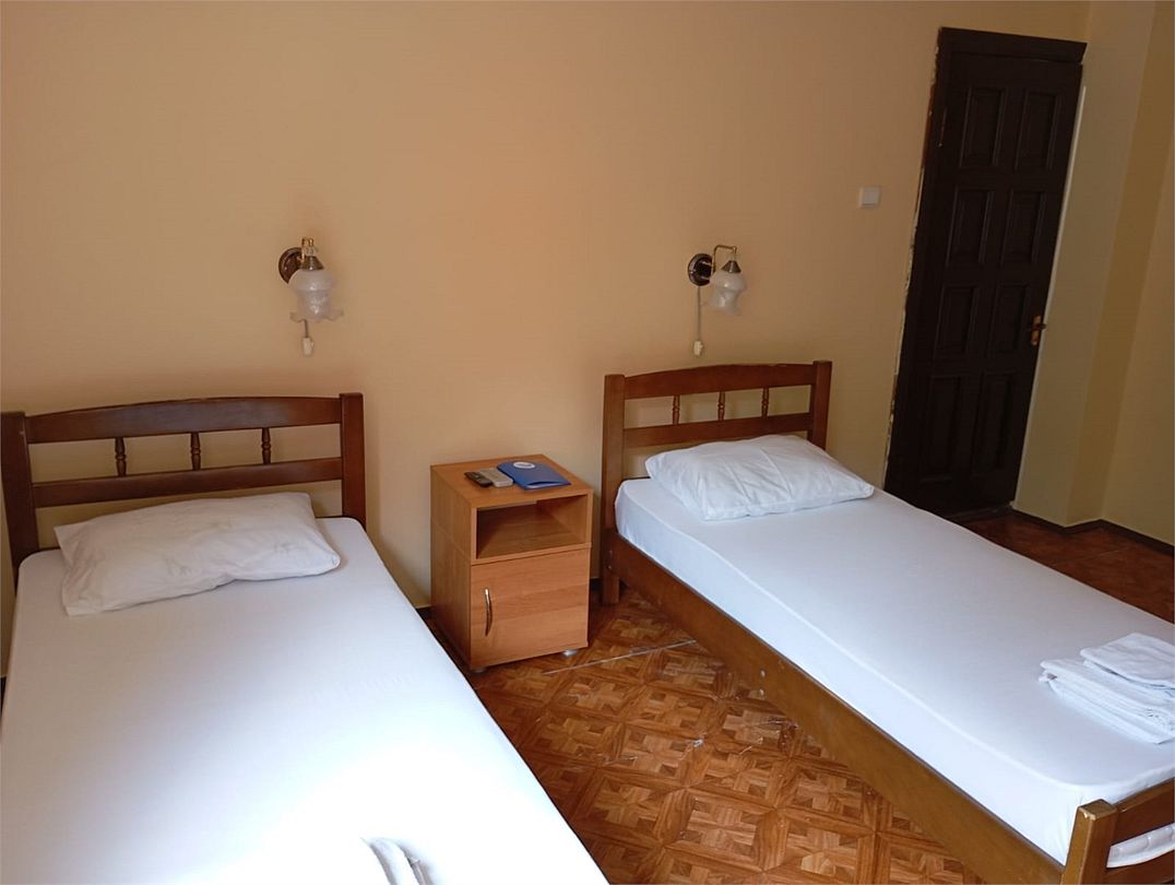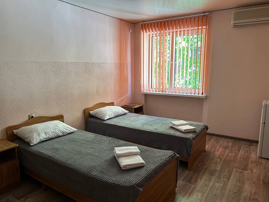 Уютный однокомнатный номер площадью 25 кв.м. Оборудован всем необходимым для полноценного и комфортного отдыха. В номере две односпальные кровати, душевая комната (душ, туалет), кровать (2 односпальные), шкаф для одежды, тумбы, холодильник, телевизор, чайник, сплит система.Услуги и удобства