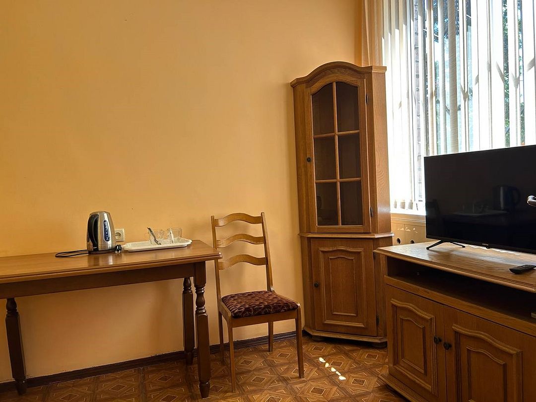 Wi-Fi, холодильник, кондиционер, двуспальная кровать, диван, шкаф для одежды, вешалки, две комнаты, раковина, душ, вид во двор, стаканы, туалет, сушилка для белья, телевизор со Smart TV, без питомцевВ гостиничном номере