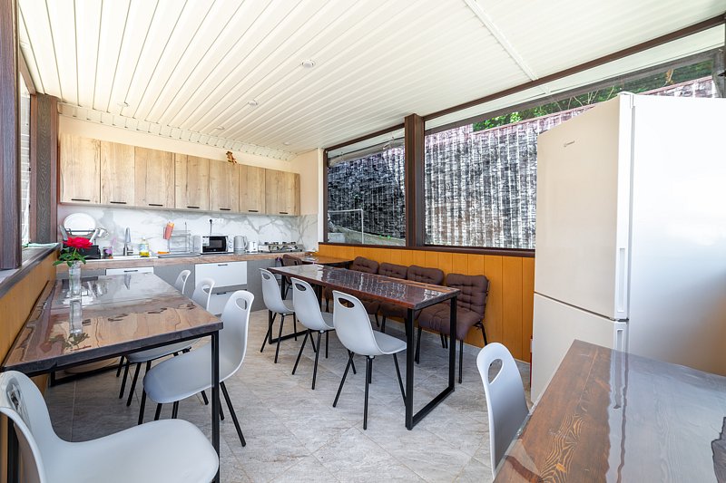 Кухонная зона позволяет гостям в полной мере ощутить атмосферу домашнего уюта во время их отдыха.