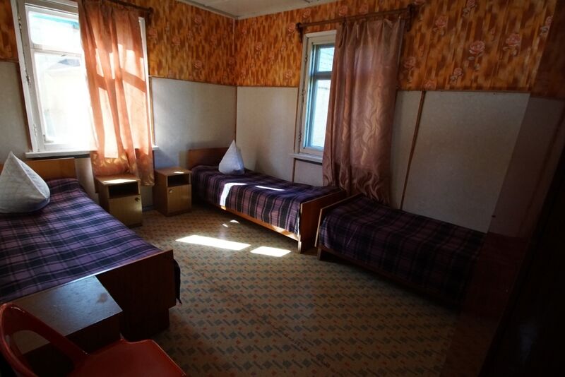 В каждом из домиков три номера, рассчитанных на размещение 2-3 человек, и одна общая кухня с холодильником, плитой и набором посуды.